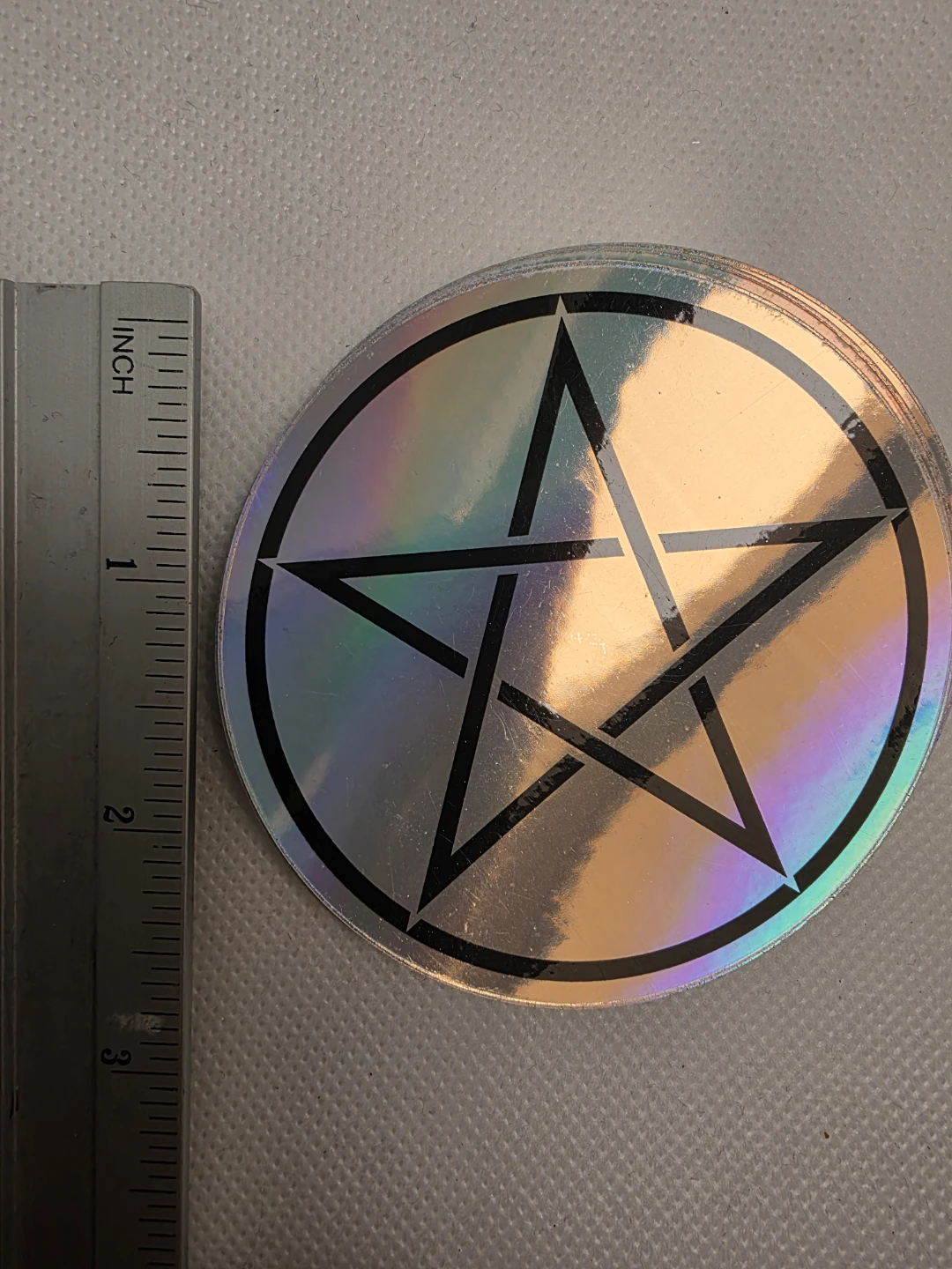 Selling a holographic pentagram sticker. It's about 2.5 inches in diameter, perfect for adding a bit of magic to your laptop, water bottle, or anywhere else you'd like to stick it!