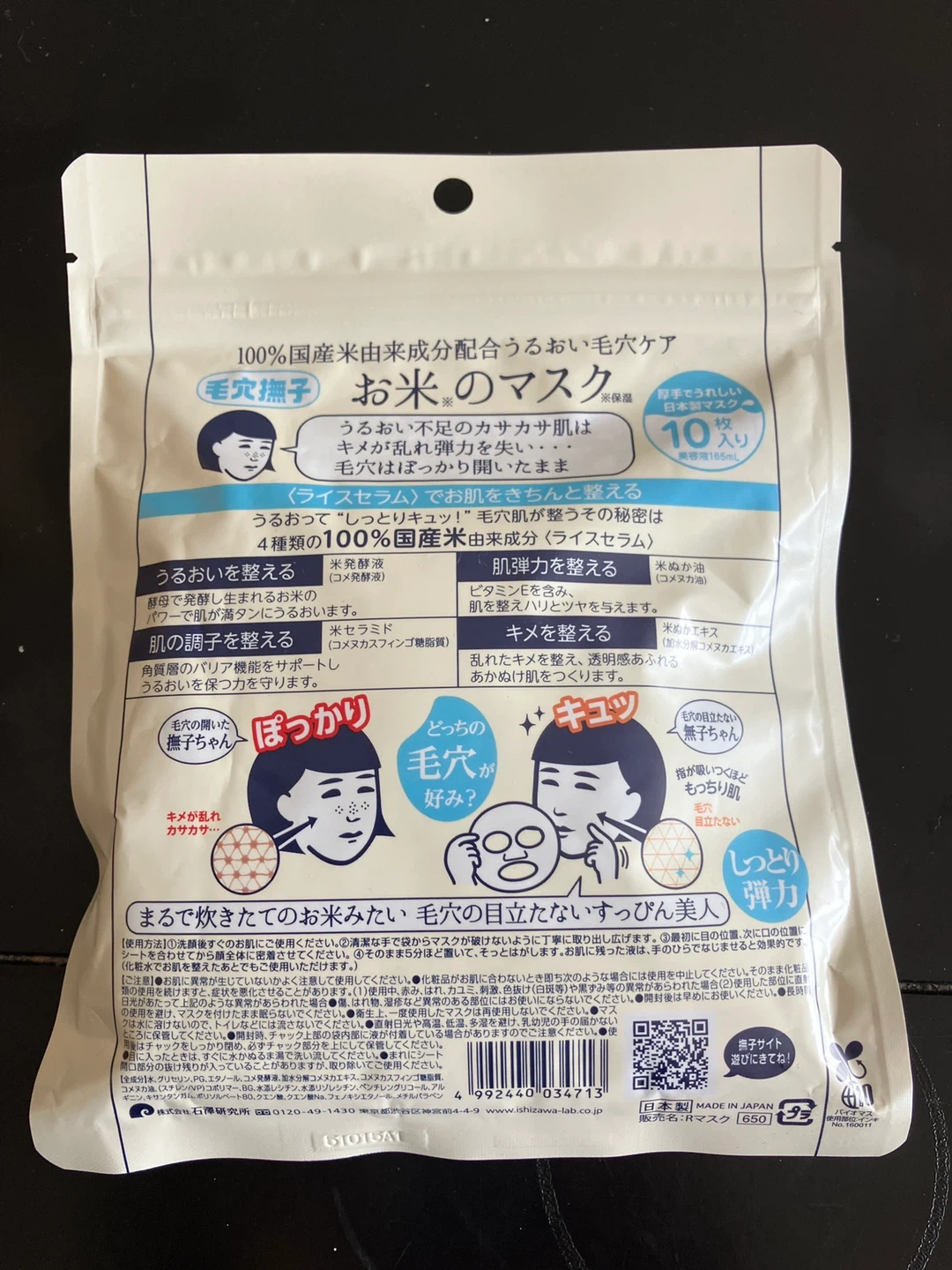 Keana Rice Mask for smooth and bouncy skin. Formulated with 100% Japanese rice serum. Contains rice extract and rice ceramide for skin elasticity. 10 sheets mask included.