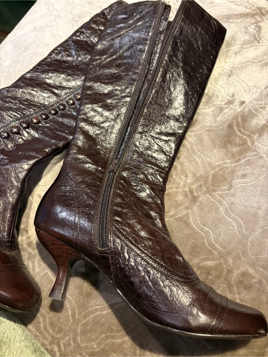 Beautiful knee-high brown leather/ faux-leather? women’s boots.