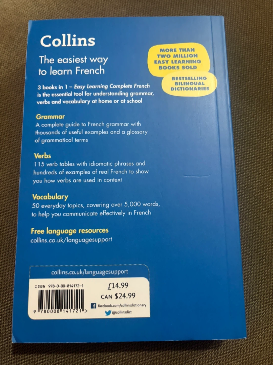 Learn French with this "Collins Easy Learning Complete French" book! It includes grammar, verbs, and vocabulary all in one place. A complete guide to French grammar with thousands of useful examples and a glossary of grammatical terms, 115 verb tables with idiomatic phrases and hundreds of examples of real French to show you how verbs are used in context, 50 everyday topics, covering over 5,000 words, to help you communicate effectively in French. Pick up in Terwillegar.