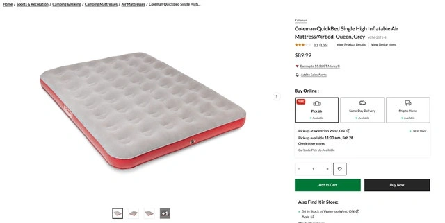 This Coleman Queen air mattress is in excellent condition and ready for use. It features a soft, plush top for extra comfort and a durable design that fits standard queen-sized sheets. Brand: Coleman Size: Queen (Approx. 78" L x 58" W x 8" H). Our Price: $45. Condition: Like new, used only a few times. Note: Does not include an air pump. Regular Price: $89.99 + tax. Cash accepted. Cashless payment accepted. Curbside pick up available. Drop off / Delivery available.