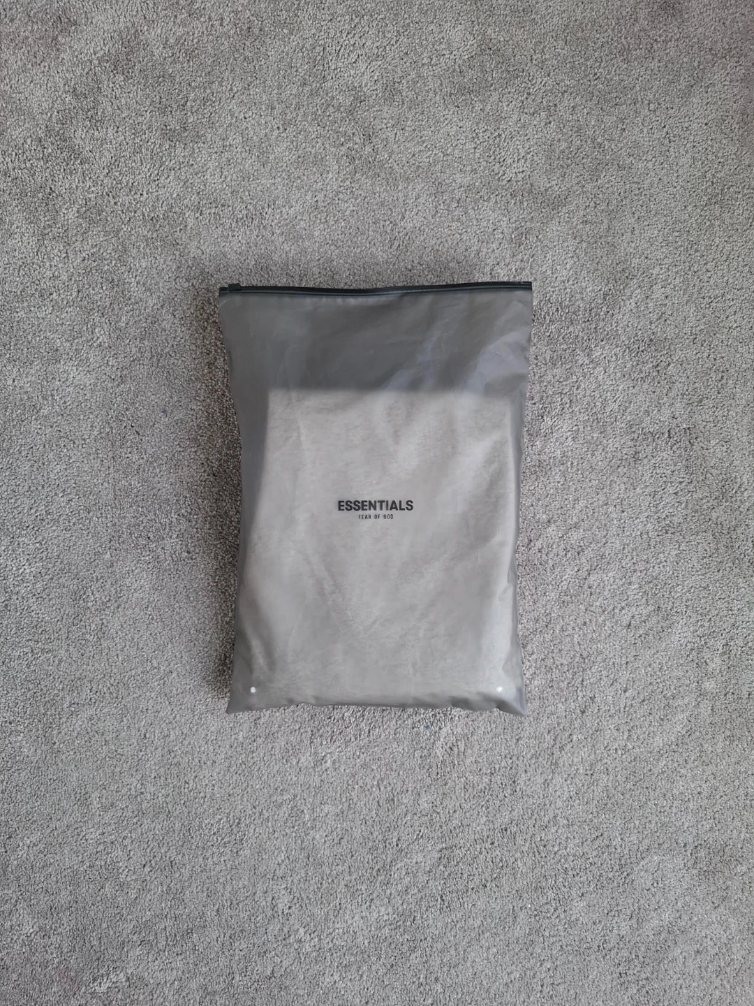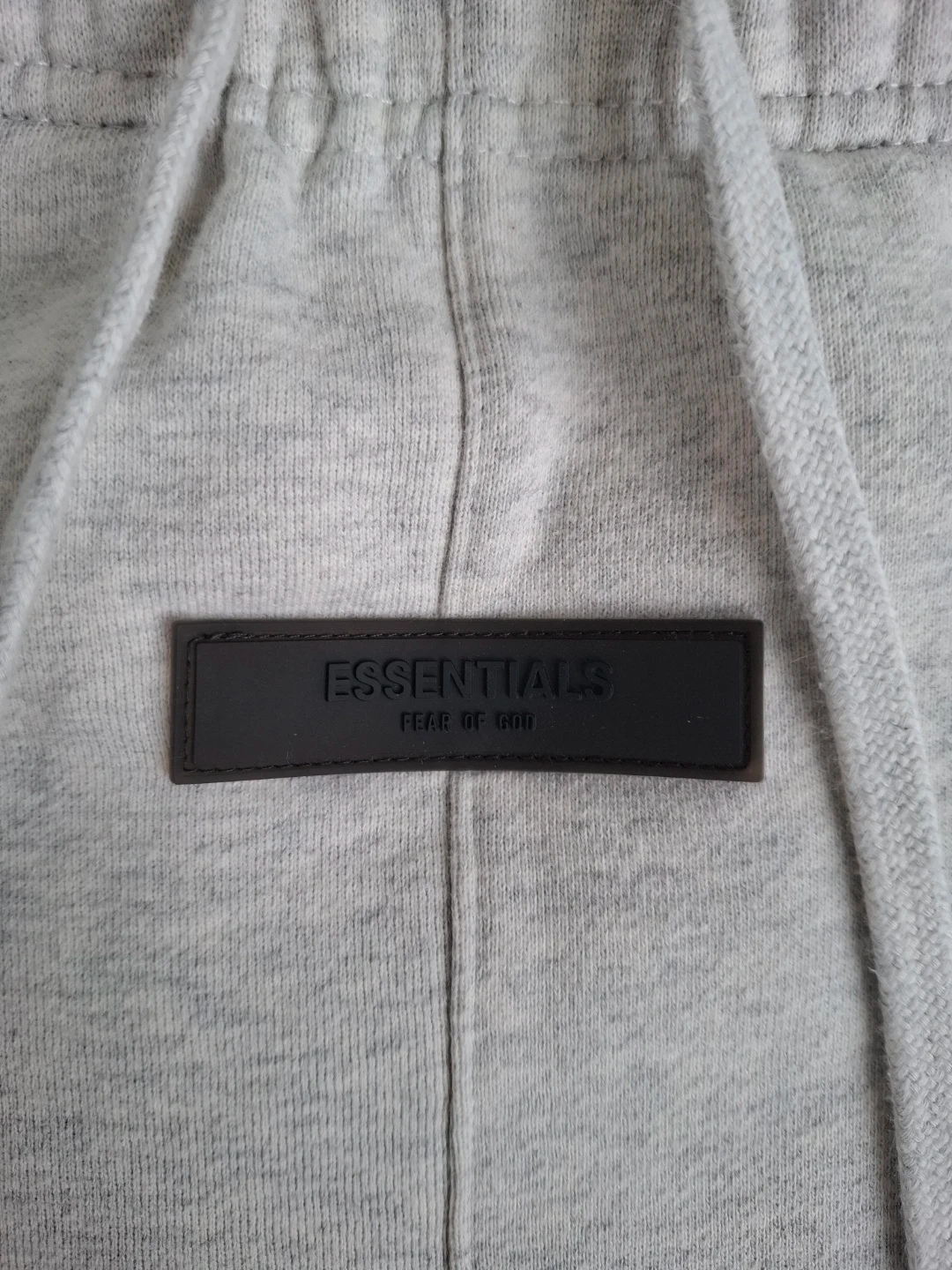 These ESSENTIALS sweatpants are a light oatmeal colour. They come with a drawstring waist and the ESSENTIALS logo printed on the leg. Includes the original packaging bag.