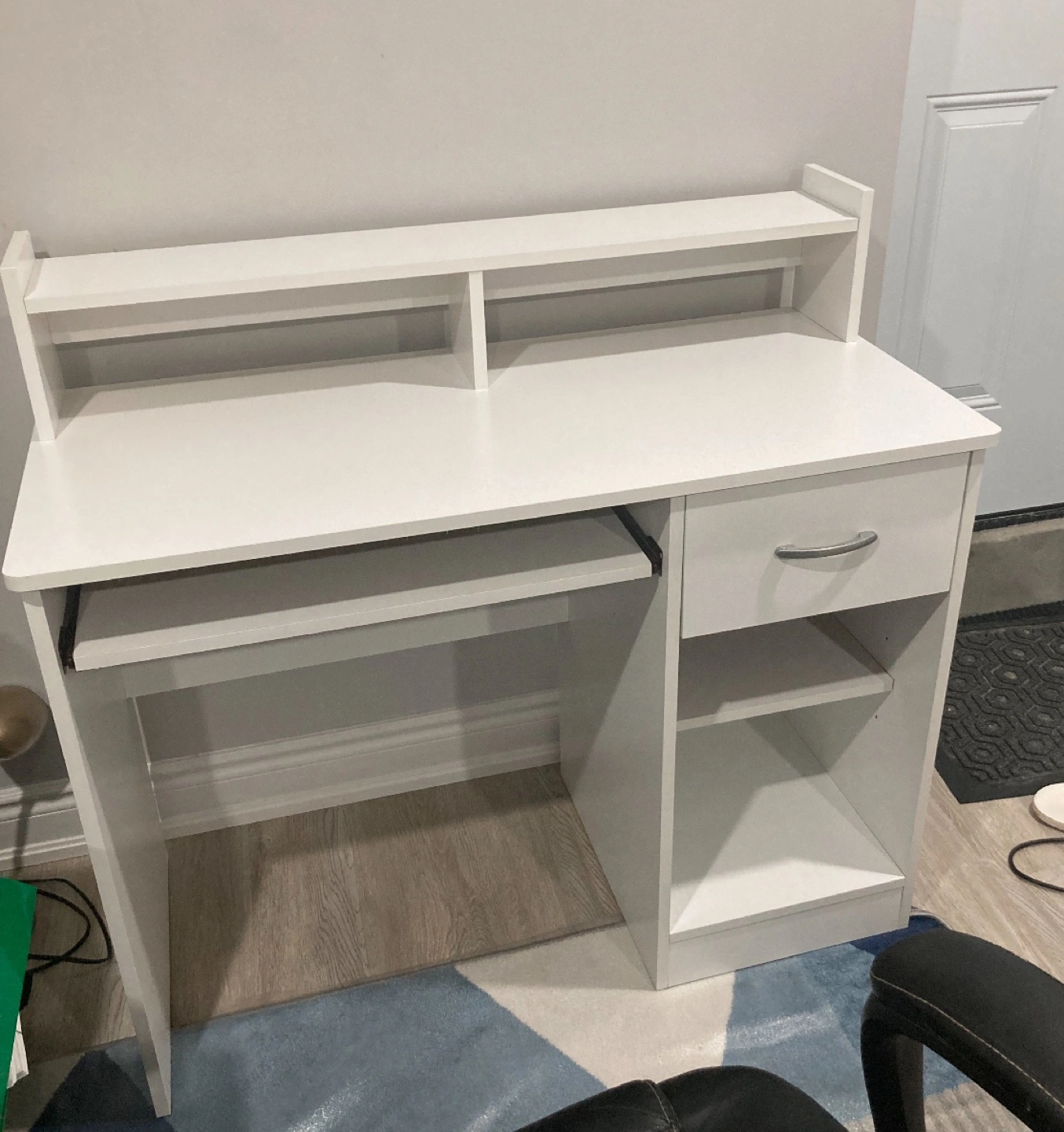 Buy & SellWhite Computer Desk with ShelfWhite Computer Desk with Shelf$85White computer desk with a shelf, one drawer, and a pull-out keyboard tray.ConditionGoodWHERE TO MEET10370 Hurontario StView MapSELLERPGNW Brampton271 review3 chats·1 favorites·47 viewsSEND CHAT TO SELLERHi PG! I’m interested in your listing.Hi PG! I’m interested in your listing.Get the Karrot app to chatSign In to chat