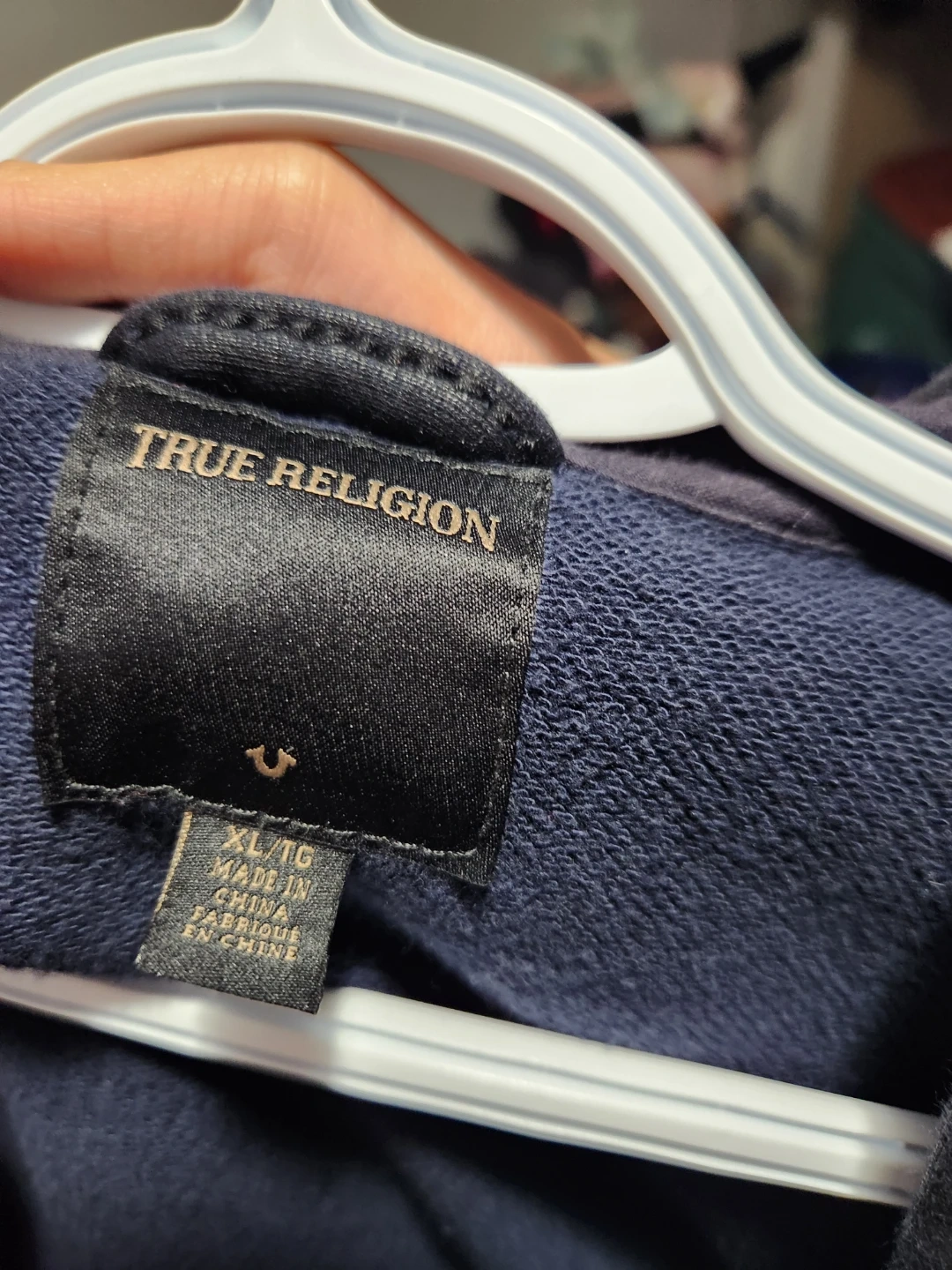 Selling a True Religion hoodie in size XL. It's a stylish piece with a unique design. Perfect for layering or wearing on its own!