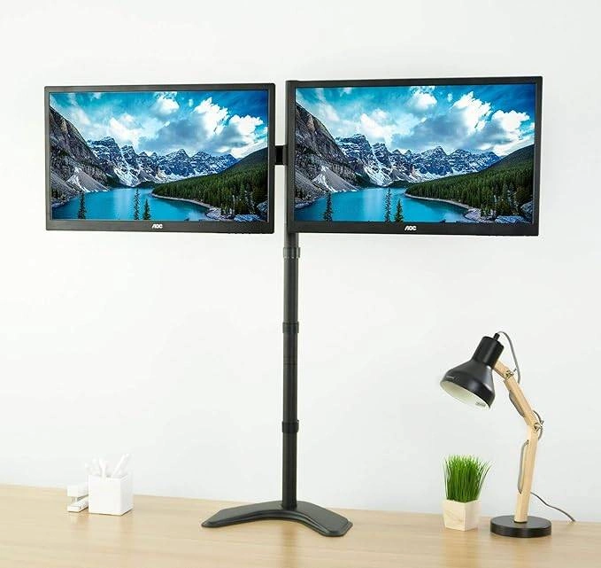 This dual monitor stand is perfect for setting up a workstation with two screens!