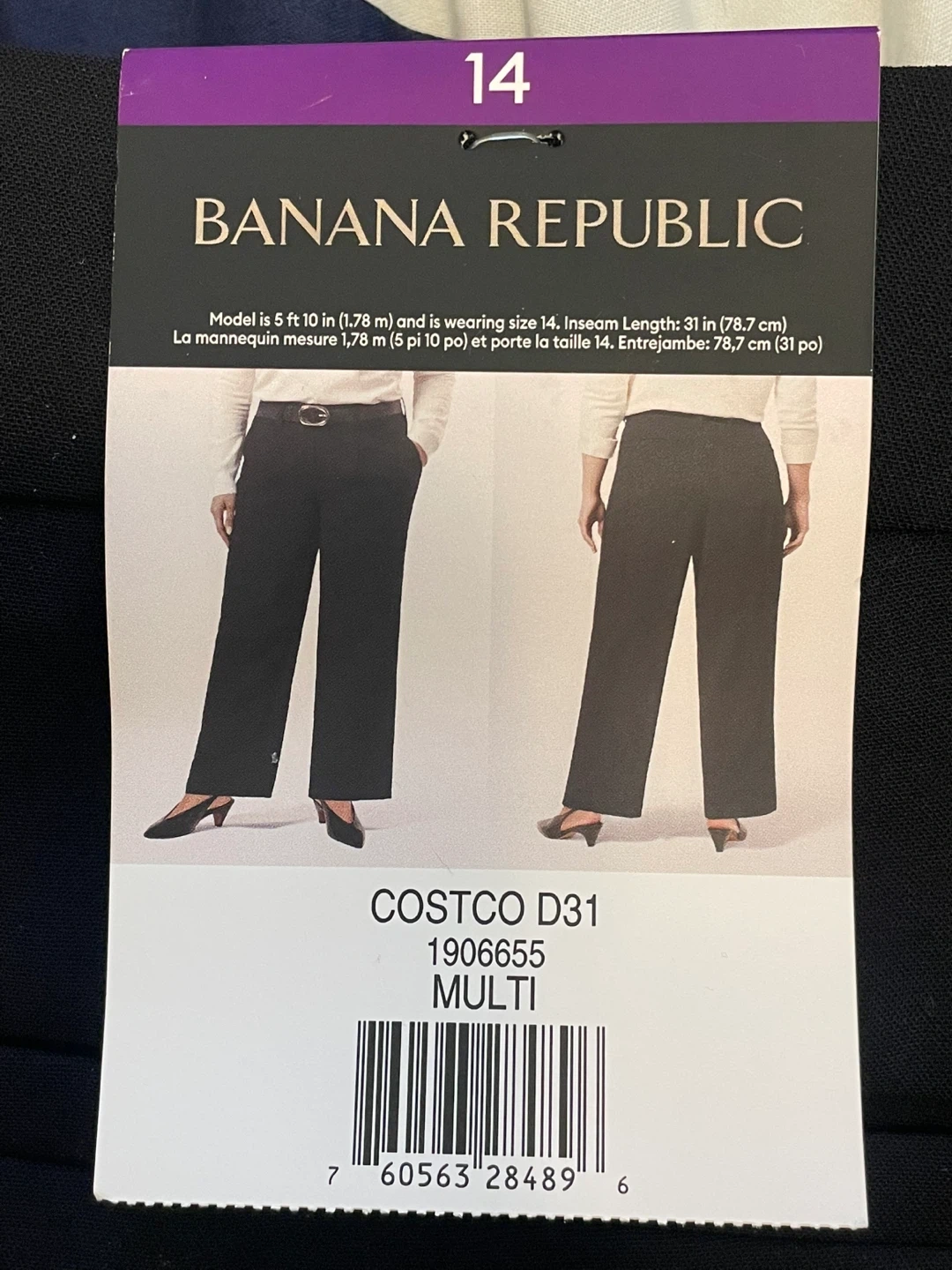 NWT Banana Republic black pants in size 14. These trousers have a 31-inch inseam. Made with a polyester blend.