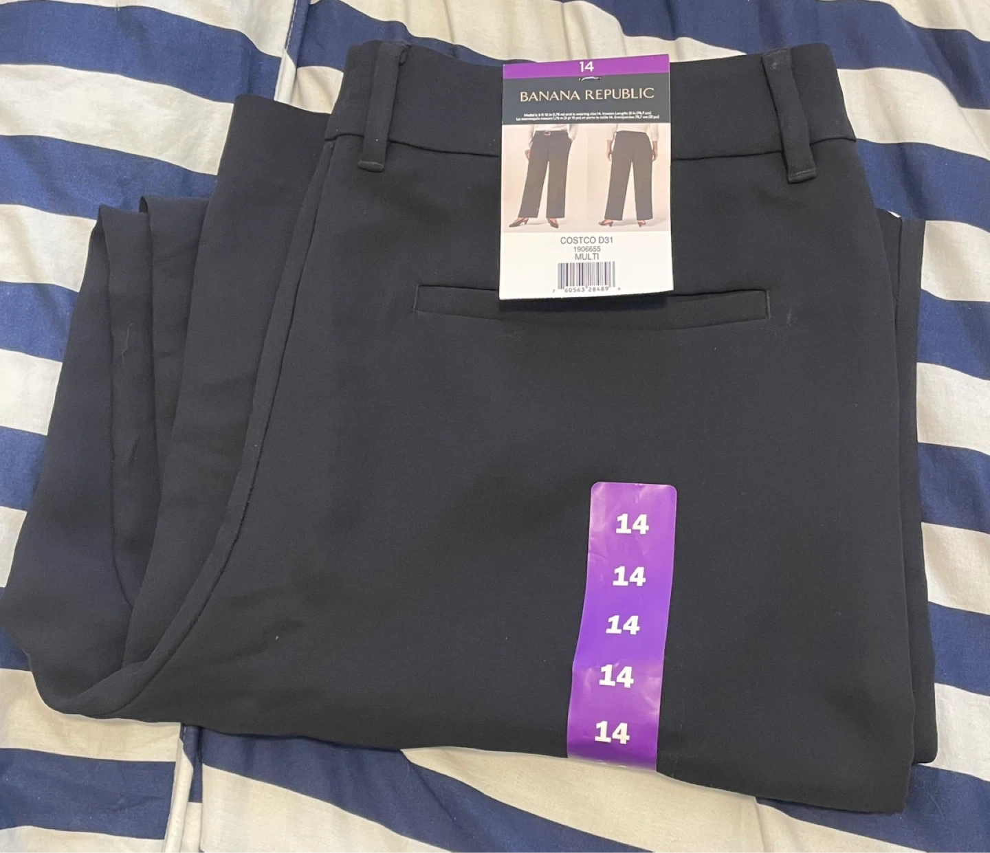 NWT Banana Republic black pants in size 14. These trousers have a 31-inch inseam. Made with a polyester blend.