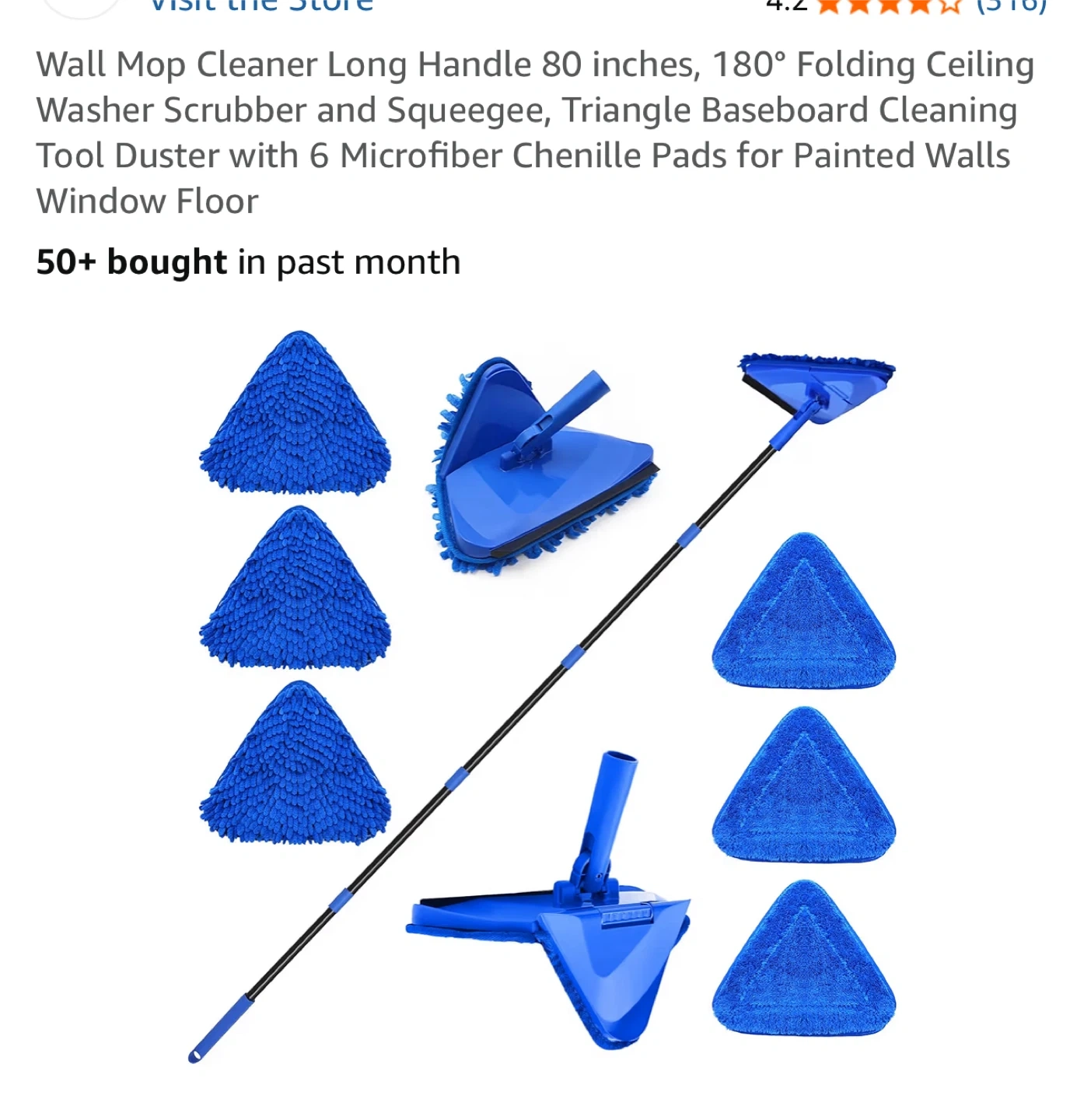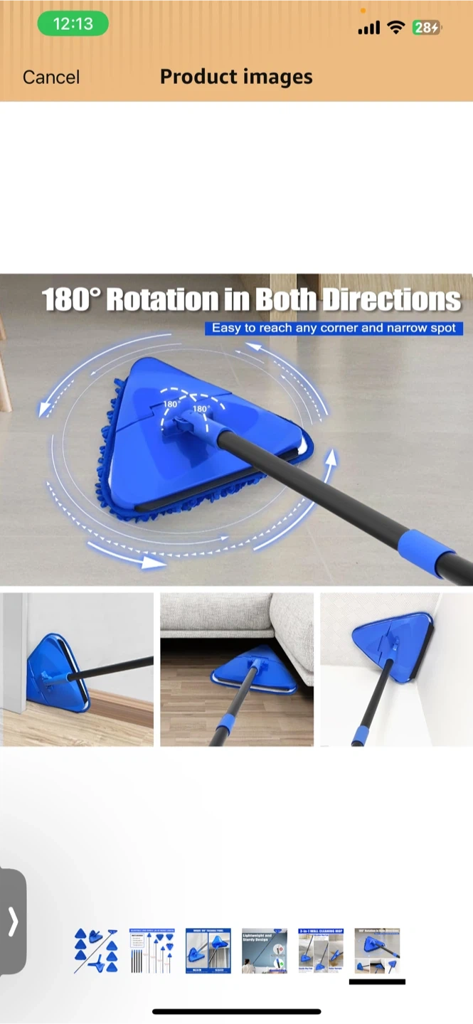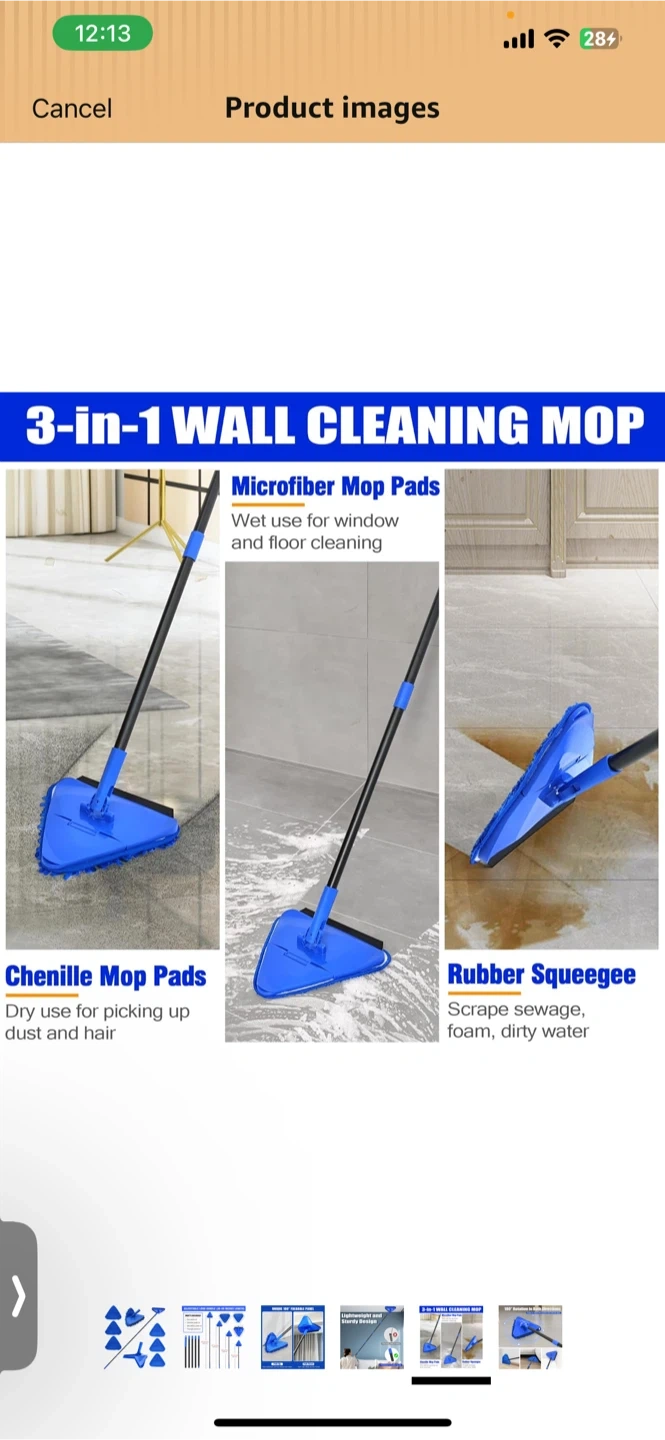 This 3-in-1 wall cleaning mop is designed for versatile cleaning. It features microfiber mop pads for wet and dry use, a rubber squeegee for scraping, and a triangular head with 180° rotation. The lightweight, sturdy design includes an adjustable long handle that extends from 36 to 80 inches.