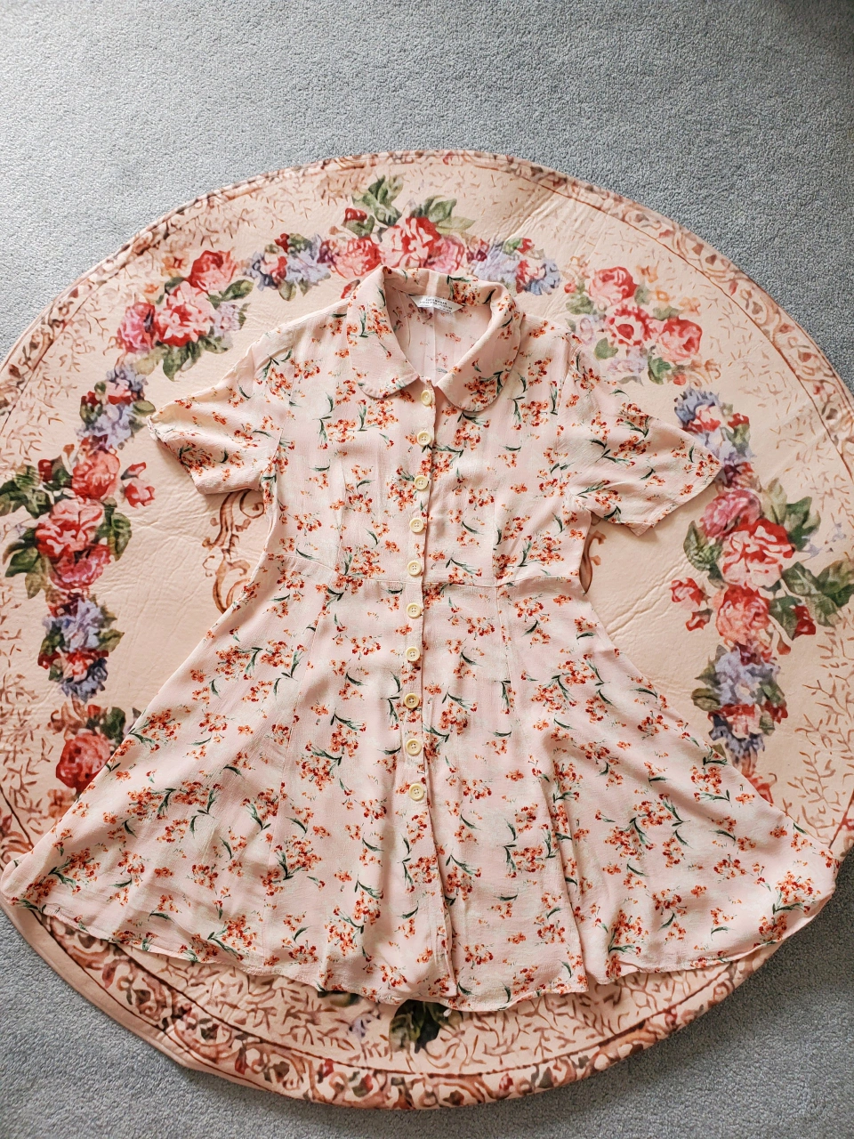 Buy & SellZara Floral Mini DressZara Floral Mini Dress$20Pink floral mini dress. Button-up front. Short sleeves. Peter Pan collar.ConditionLike newSizeSmallBrandZaraWHERE TO MEETCheck LocationView MapSELLERBrendaMonterey Park100 reviews0 chats·1 favorites·26 viewsSEND CHAT TO SELLERHi Brenda! I’m interested in your listing.Hi Brenda! I’m interested in your listing.Get the Karrot app to chatSign In to chat