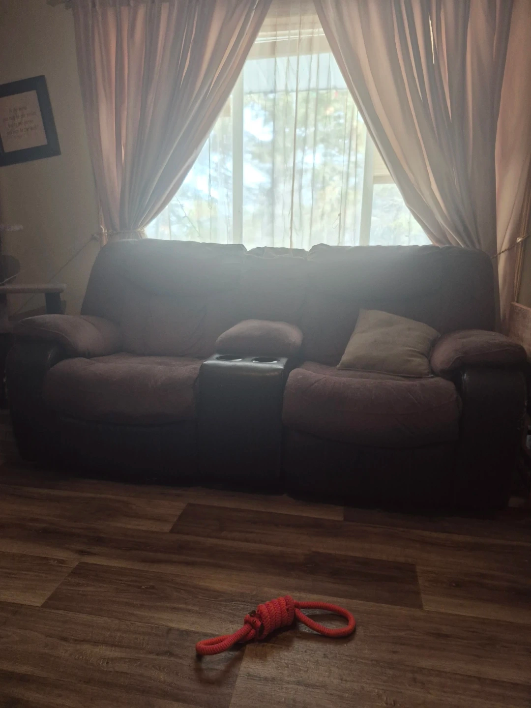 Dark Brown Loveseat with Center Console