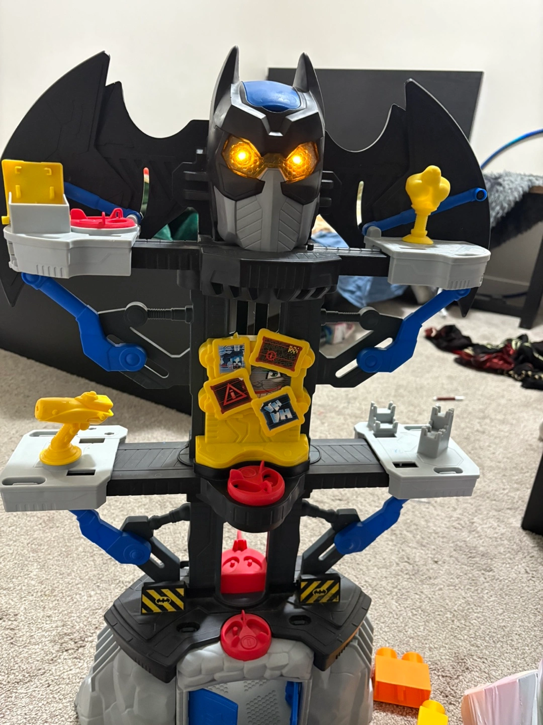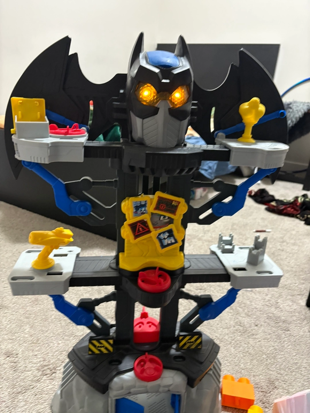 Interactive Batman playset. Features a light-up Batman figure at the top. Multiple levels and accessories. Great for imaginative play.