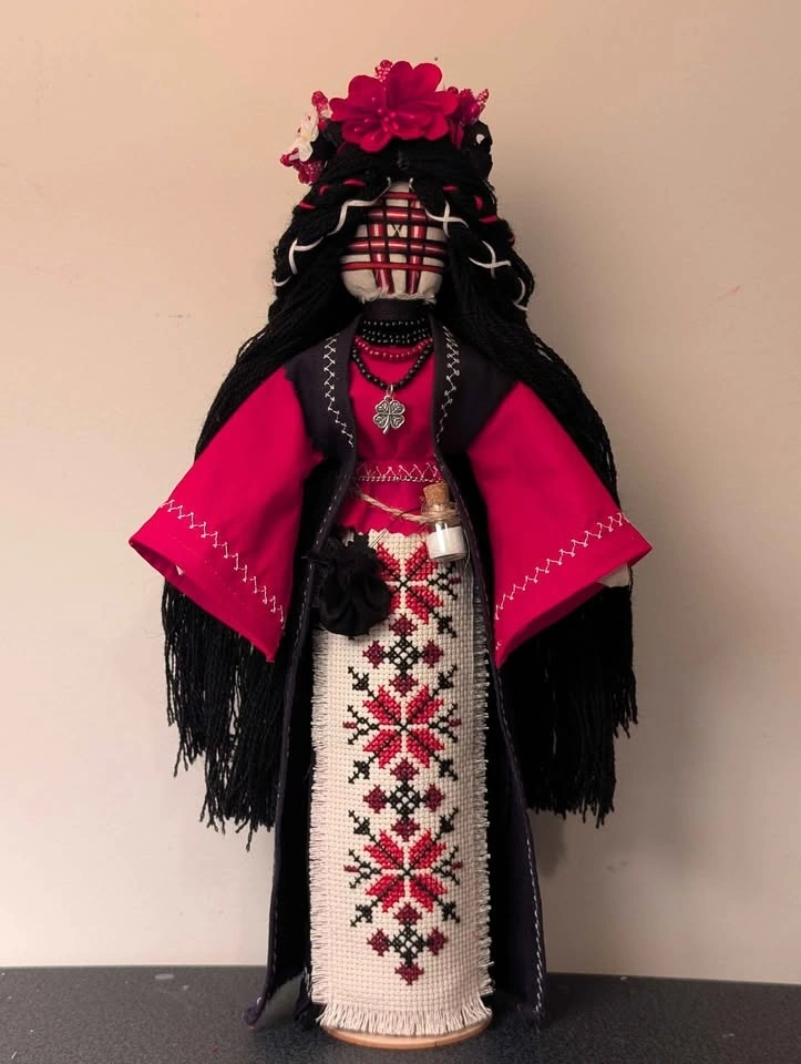 Motanka is a traditional Ukrainian protective doll, created without facial features and formed through wrapping, tying, and stitching. It is a symbol of protection, continuity, and connection to family and heritage.