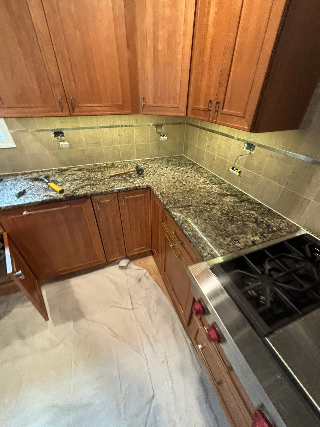 I have three pieces. One piece had a crack when we were moving. They all come out in one piece: the island, the 36 x 22 piece, and the portion of the L shape is also available. Feel free to ask questions.