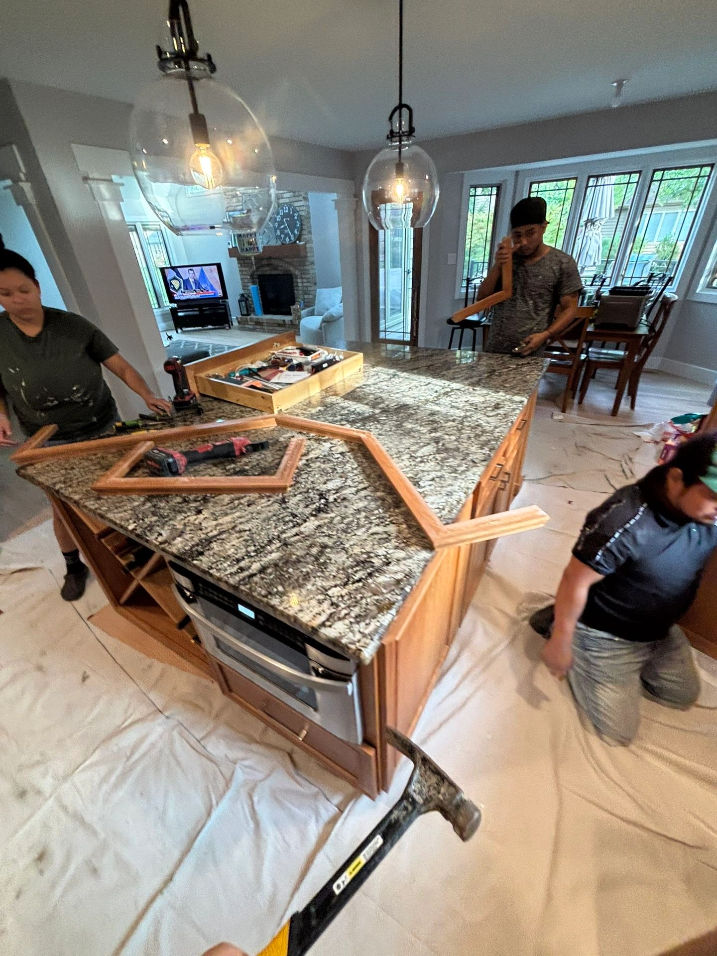 I have three pieces. One piece had a crack when we were moving. They all come out in one piece: the island, the 36 x 22 piece, and the portion of the L shape is also available. Feel free to ask questions.