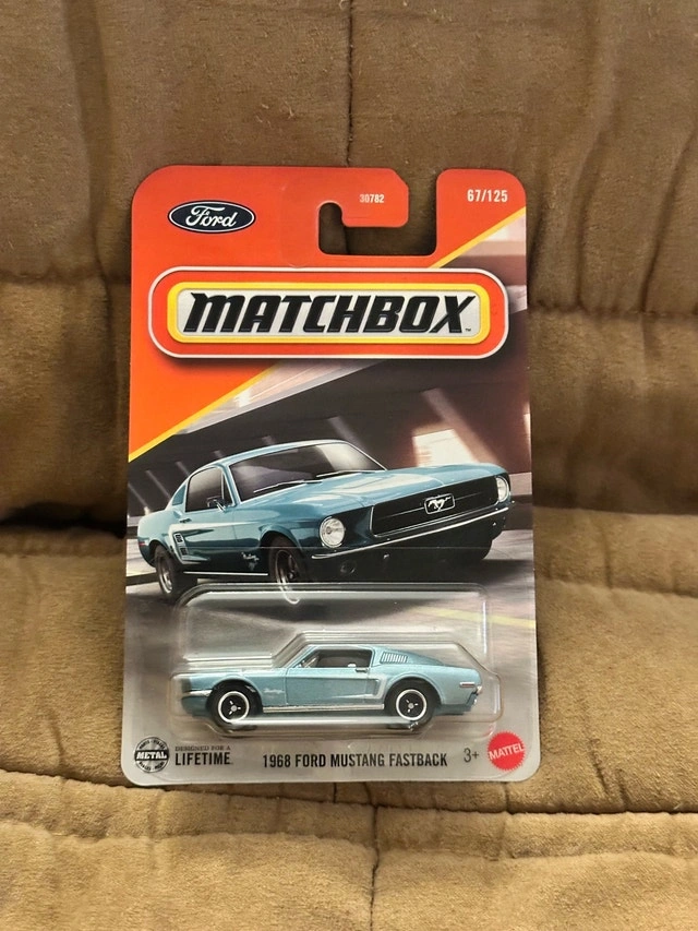 I am selling a new Matchbox 1968 Ford Mustang Fastback diecast car. This collectible car is in mint condition, still sealed in its original packaging. It's a great addition to any diecast car collection! This would make a great gift for any Mustang enthusiast. Specifications: Brand: Matchbox, Vehicle Make: Ford, Model: Mustang Fastback, Year: 1968, Scale: 1:64, Condition: New. If you're seeing this ad, the Matchbox '68 Mustang Fastback is still available. Cash accepted.