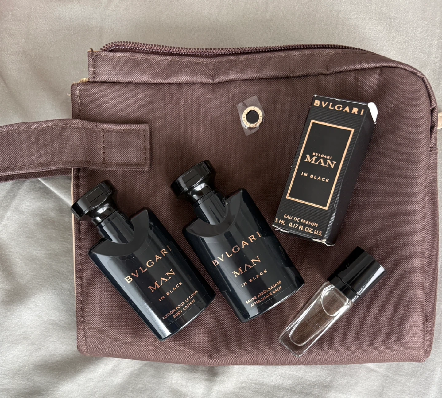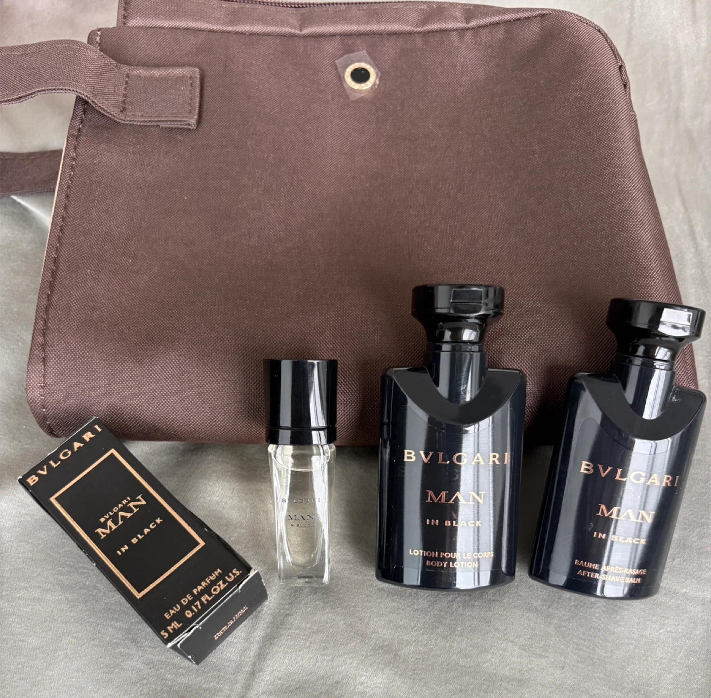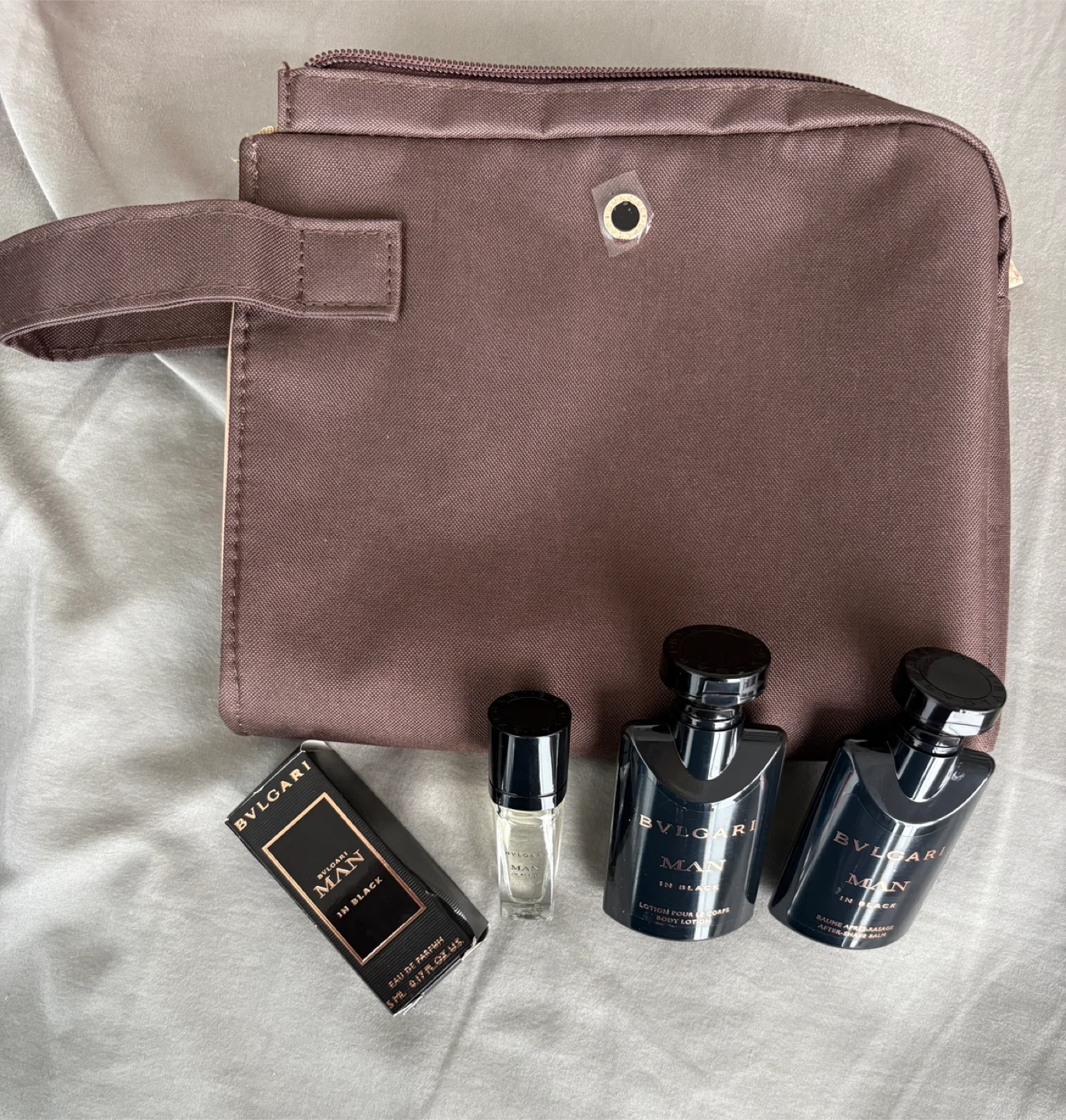 257Will not reply to ‘I am interesred’. BVLGARI Man In Black set that includes a travel bag, perfect for keeping your essentials organized! The set features a body lotion, aftershave balm, and eau de parfum, all in the sophisticated Man In Black scent