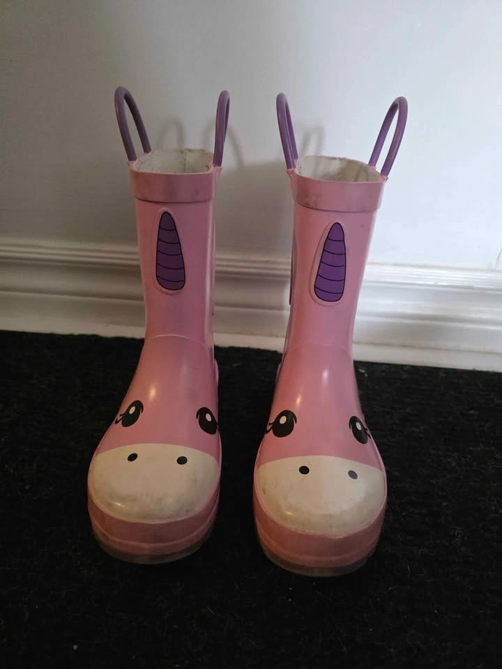 Buy & SellUnicorn Rain BootsUnicorn Rain Boots$10Size 12 rain boots with handles to help your child put them on by themselves. Great for the rainy spring weather.WHERE TO MEETCheck LocationView MapSELLERKateSouth London191 review0 chats·0 favorites·0 viewsSEND CHAT TO SELLERHi Kate! I’m interested in your listing.Hi Kate! I’m interested in your listing.Get the Karrot app to chatSign In to chat