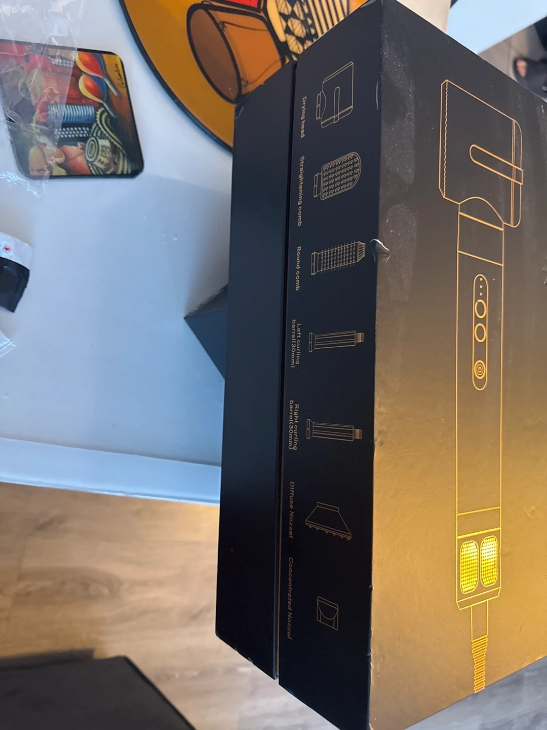 Selling a brand new 7 in 1 Pro Hair Styler Complete! It comes with all the attachments, including the drying head, straightening comb, round comb, left and right curling barrels (30mm), diffuse nozzle, and concentrated nozzle. It's still in its original box, ready for a new owner to try out all the different styles!