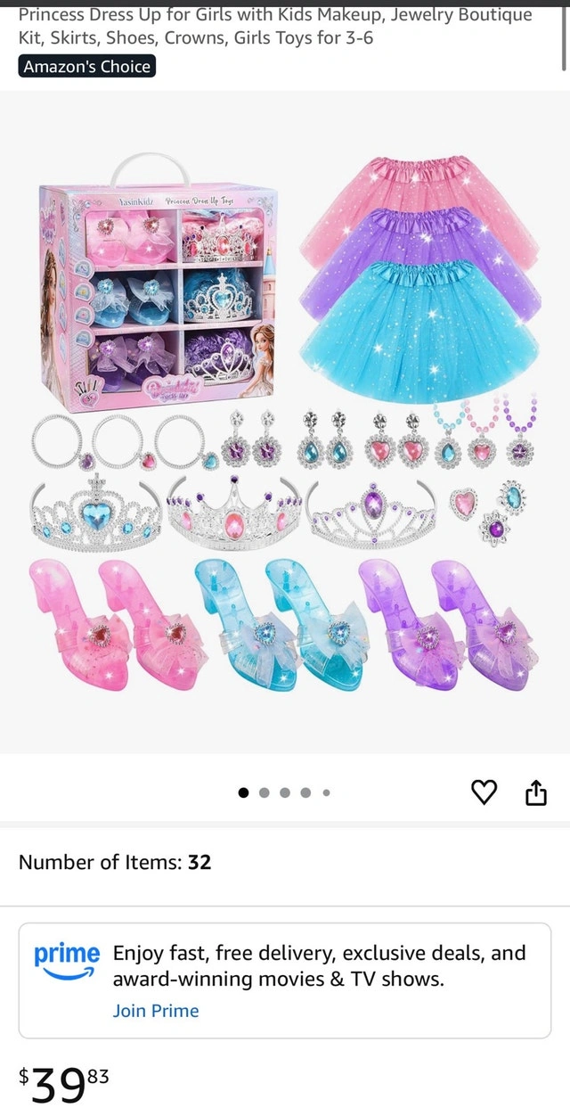 Sparkle and shine with this YASINKIDZ princess dress-up set for girls, including makeup, jewellery, dresses, shoes, and crowns, perfect for little ones aged 3-6! This set is nearly new, with all pieces in excellent condition. Let your little princess's imagination soar as she plays dress-up with this enchanting collection. Includes a variety of dresses, skirts, and tops, several pairs of shoes, a selection of crowns, and makeup and jewellery accessories. Unleash your child's inner royalty with this dazzling dress-up set! If the ad is still up, the item is available for purchase. This set is in excellent condition.