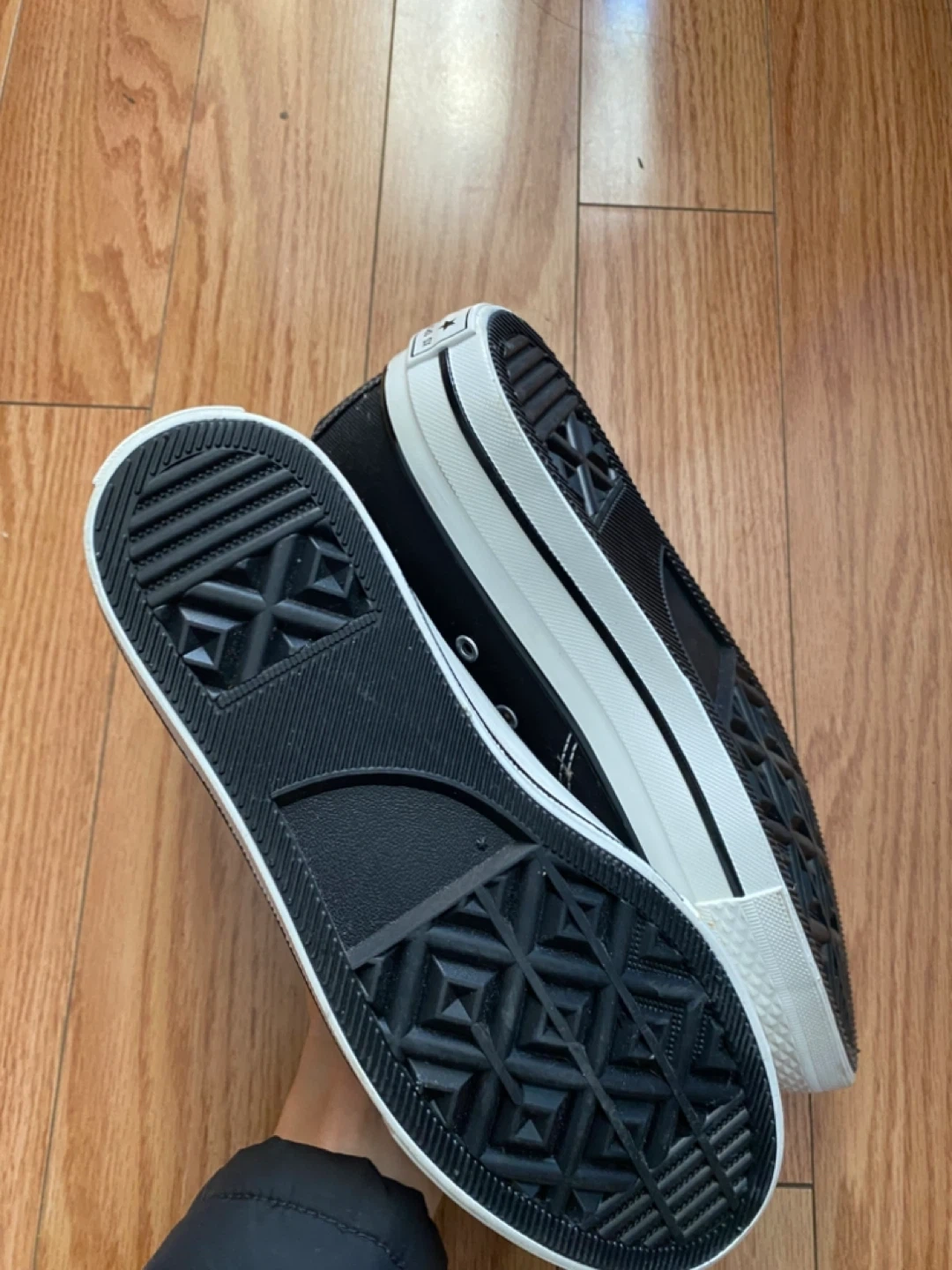 Here are some Xinshun Kids black high-top sneakers. Size 7.5 for big kids or men.