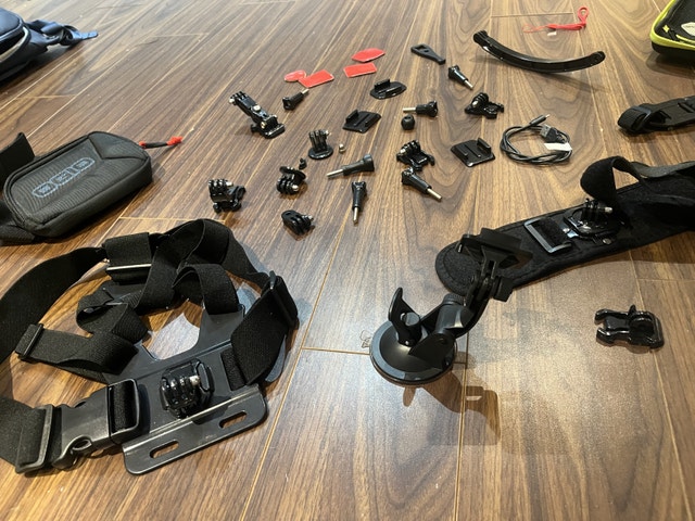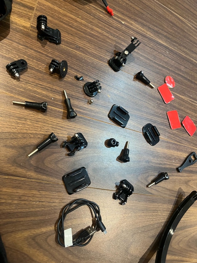 Brand new case of GoPro accessories and parts. Many different attachments that are all new and great quality. I bought it for my son but he broke his GoPro, so I need to sell these. Many professional 3M stickers as well. The small bag is a pouch for holding the GoPro, it’s $20.