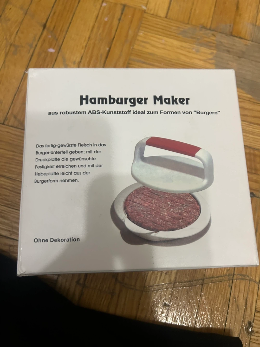 Buy & SellHamburger MakerHamburger Maker$10Form perfect burgers with this hamburger maker. It's made of robust ABS plastic. Use it to shape your ground meat patties easily.WHERE TO MEETCheck LocationView MapSELLERZahraaParkwoods15112 reviews0 chats·0 favorites·2 viewsSEND CHAT TO SELLERHi Zahraa! I’m interested in your listing.Hi Zahraa! I’m interested in your listing.Get the Karrot app to chatSign In to chat