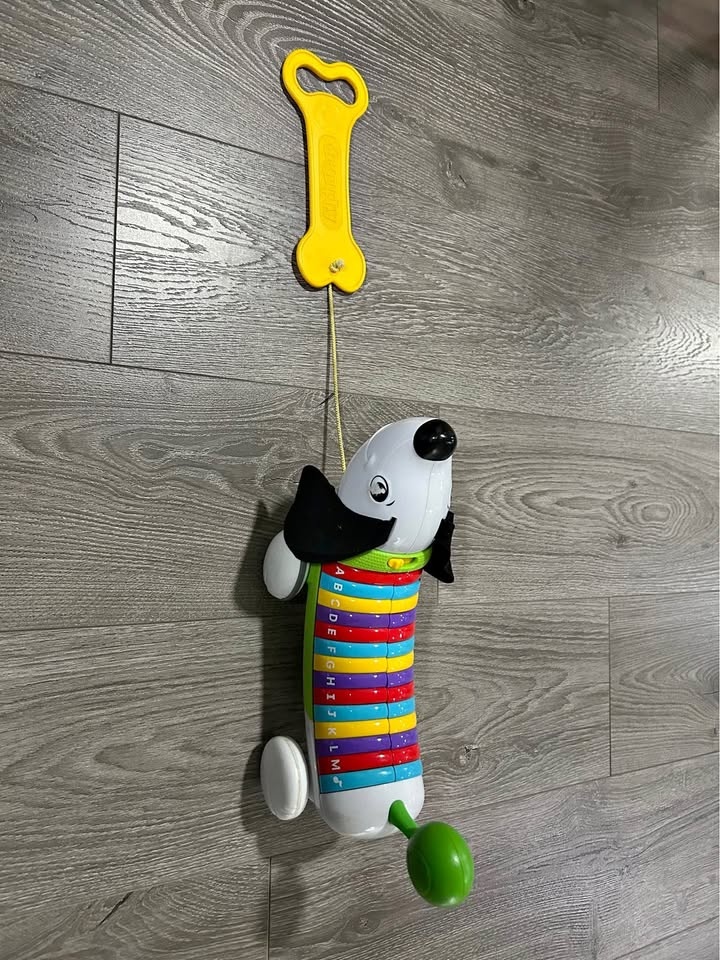 Selling a LeapFrog AlphaPup pull-along learning puppy in good working condition. This cute dog teaches the alphabet and letter sounds with fun songs and phrases when your child presses the colorful A–Z buttons on its back. Kids can pull it by the yellow bone handle and watch the pup wobble along behind them. Perfect for toddlers 1–3 years old to practice walking, fine motor skills, and early letter recognition.
