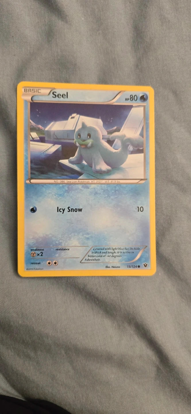 This is a Basic Pokemon trading card featuring Seel. The card has 80 HP and its attack is "Icy Snow" dealing 10 damage. It has a weakness of x2 and no resistance listed. The card is from 2016.