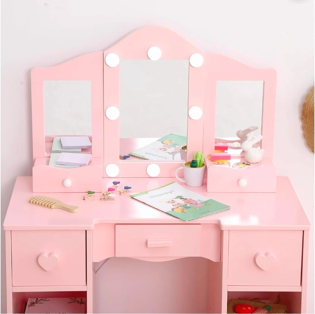 Pink Vanity Makeup Dressing Table with Lights & Stool