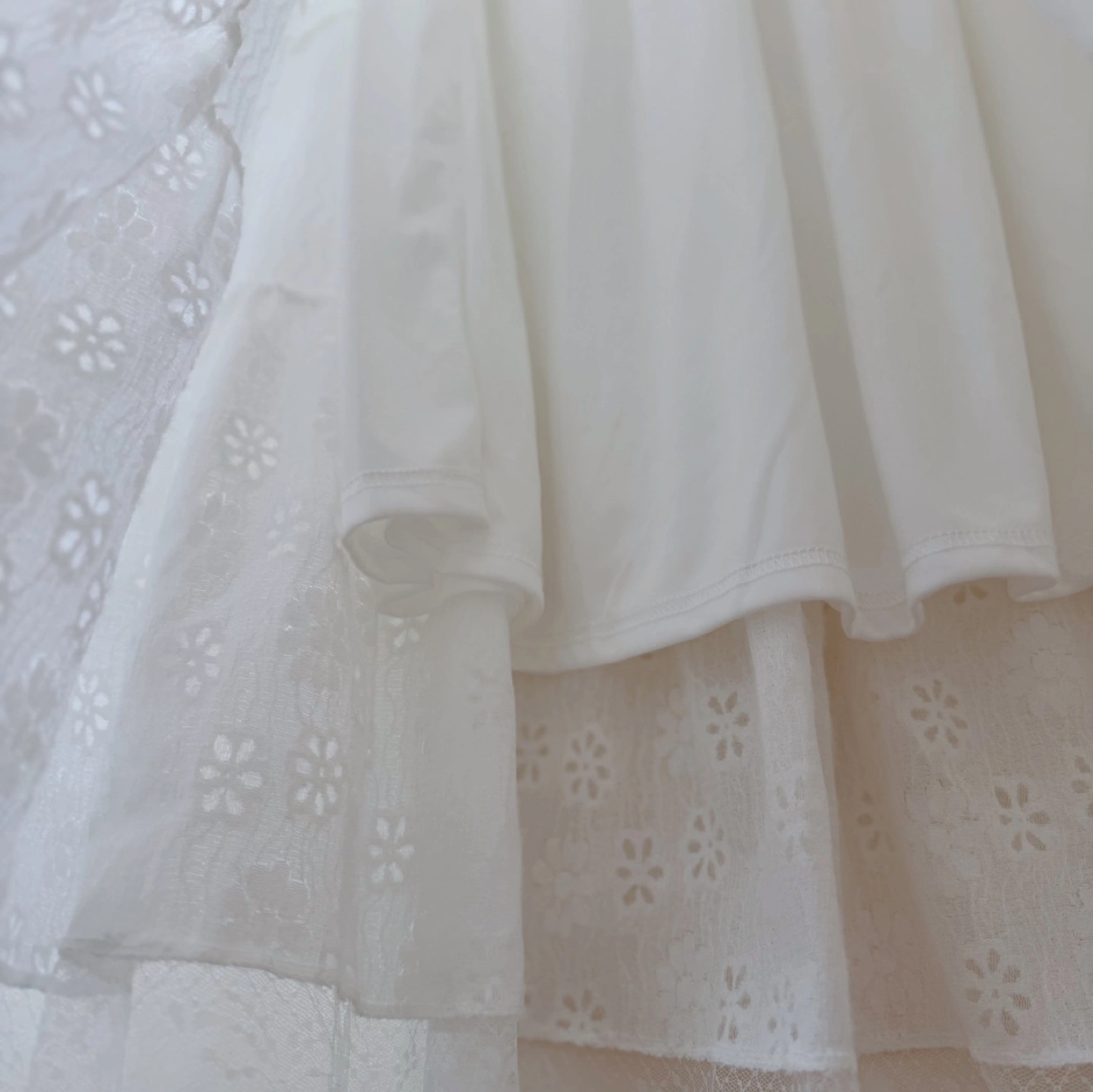 • Scalloped lace trim at the hem