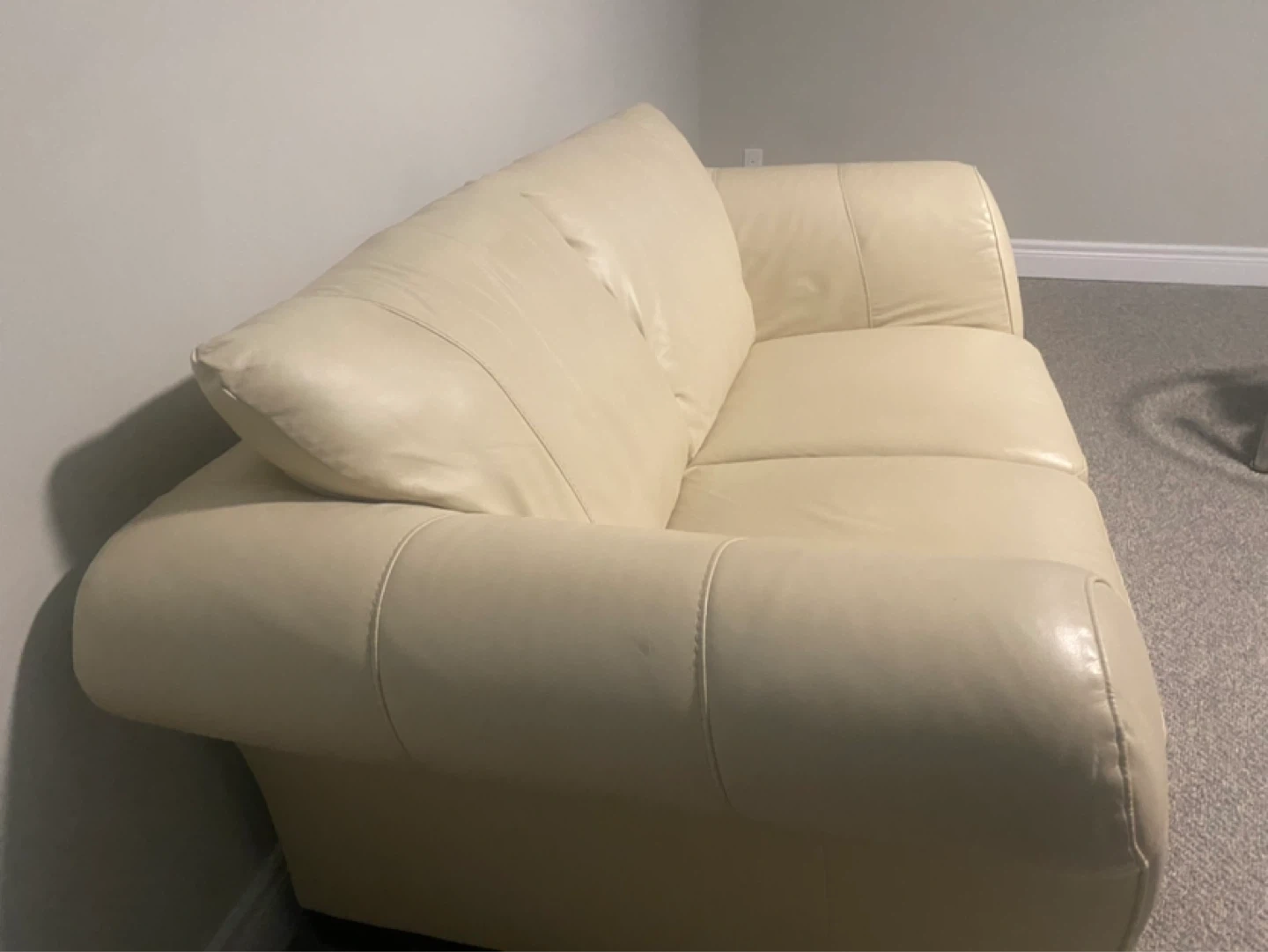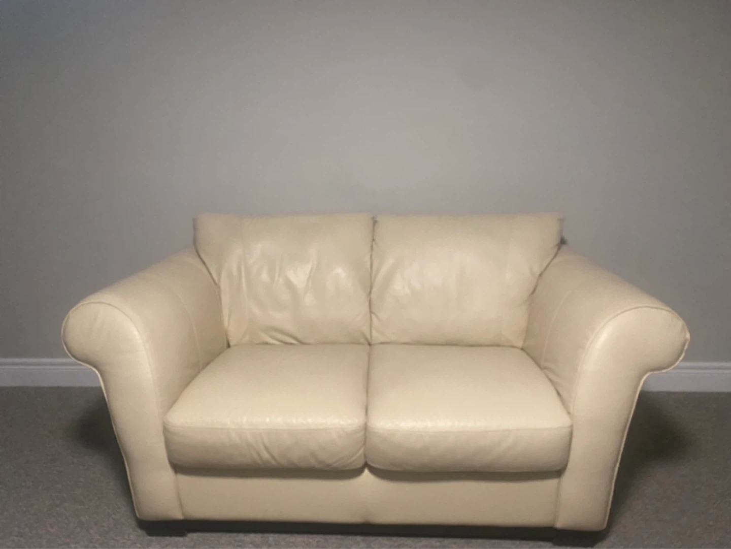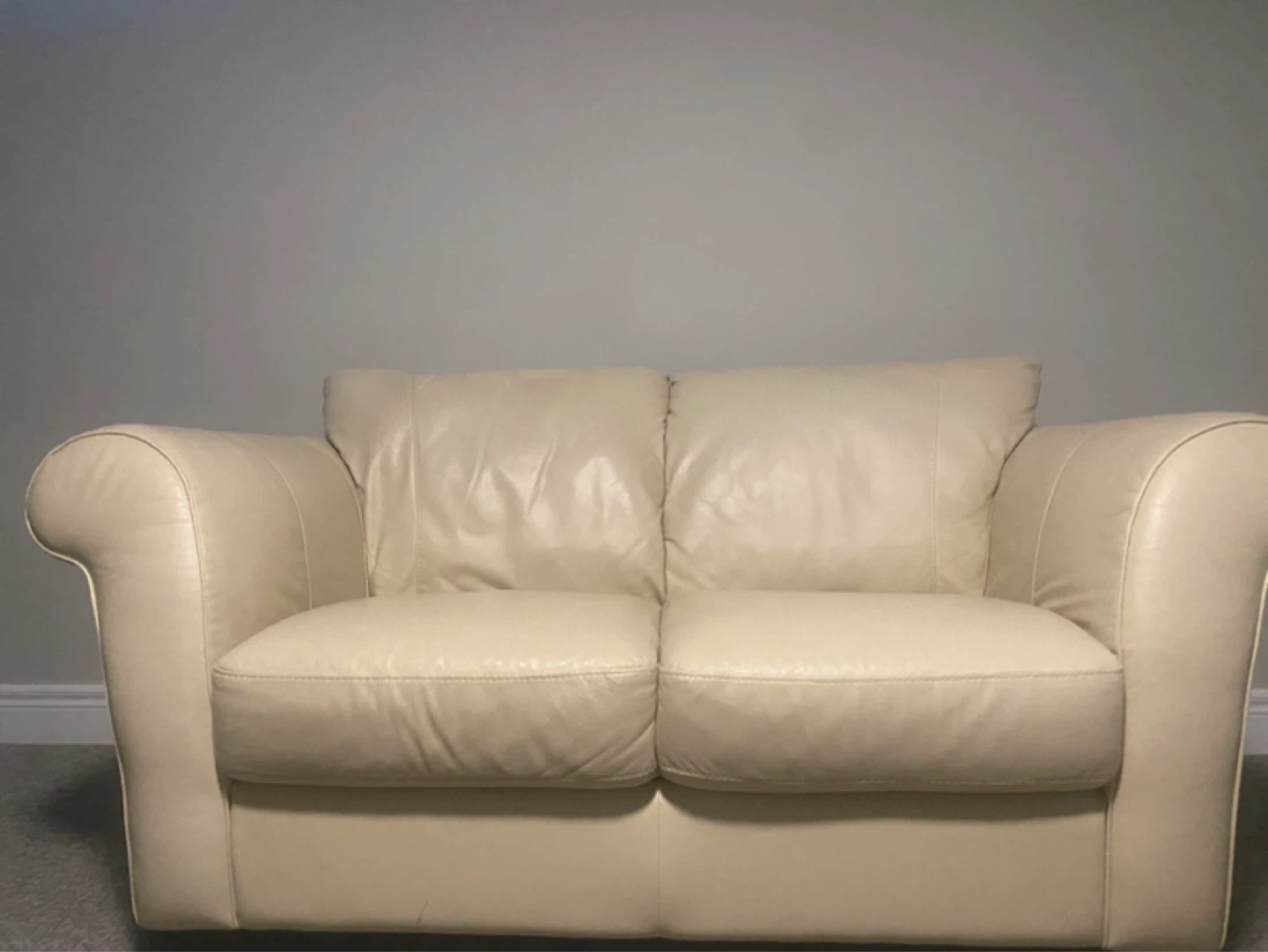 Cream Leather Loveseat Sofa