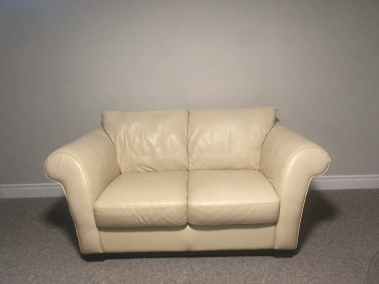 Cream Leather Loveseat Sofa