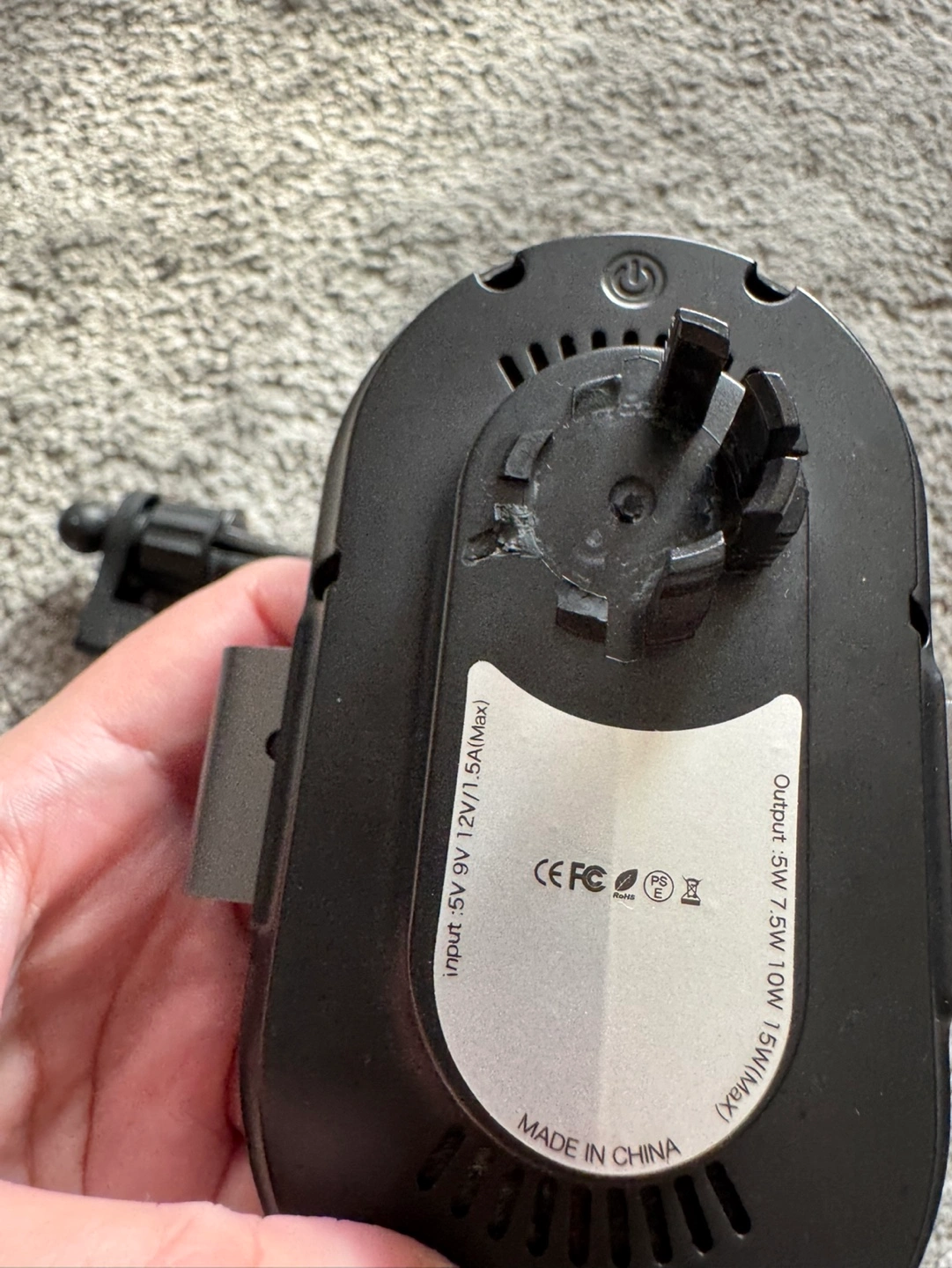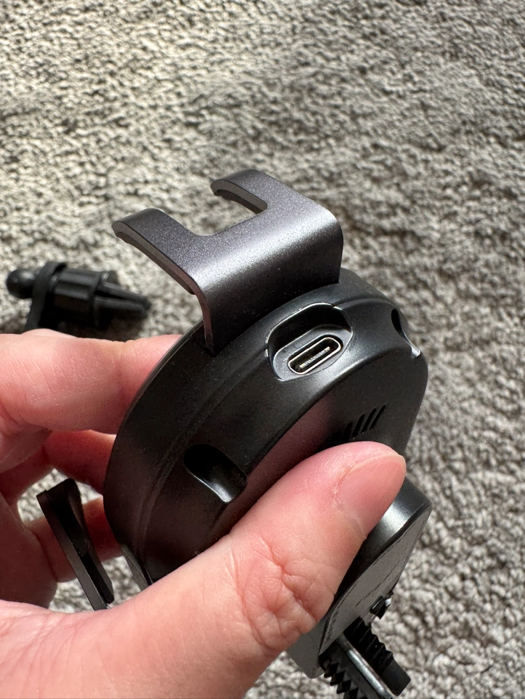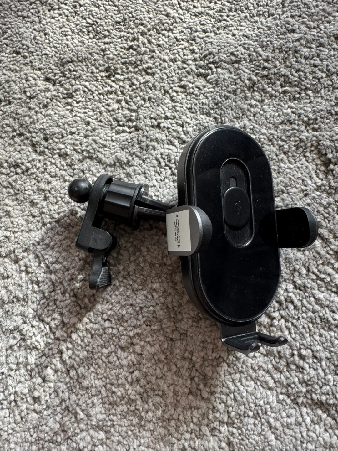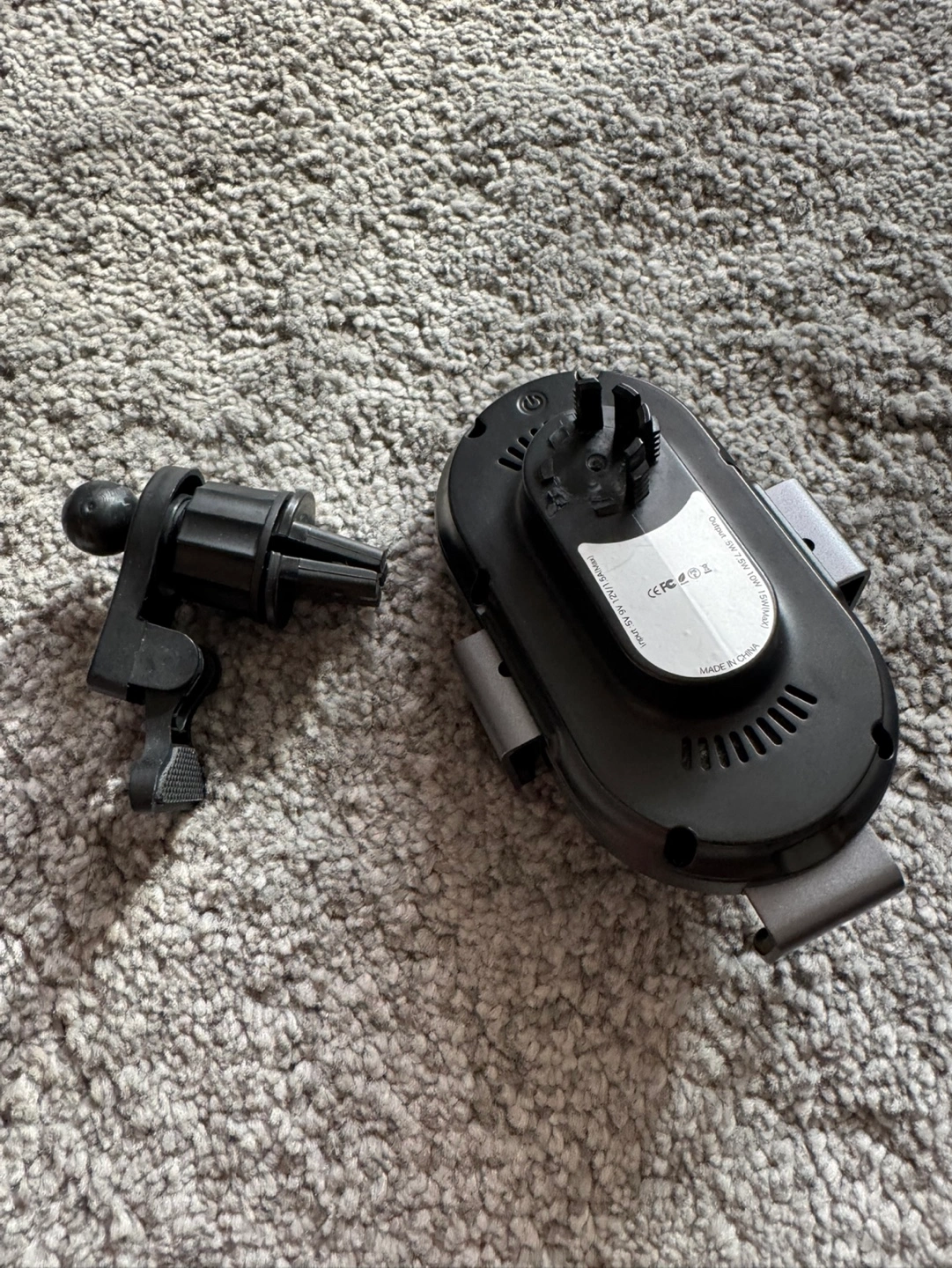 Black wireless charging phone mount. Includes car vent mount. USB-C input. Brand new. Unfortunately when i open the box, it comes out and broken a part of the connector