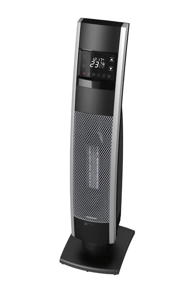 Elegant slim tower design that looks great in any room. Fast, efficient heating with oscillation for full-room warmth. Features digital controls and remote convenience. Safe & reliable.