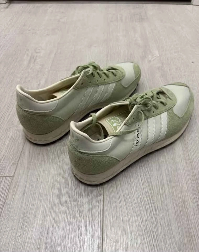 Retro Adidas TRX Vintage sneakers. Light green and white colorway. US men's size 10.5. Classic style. Great for everyday wear.