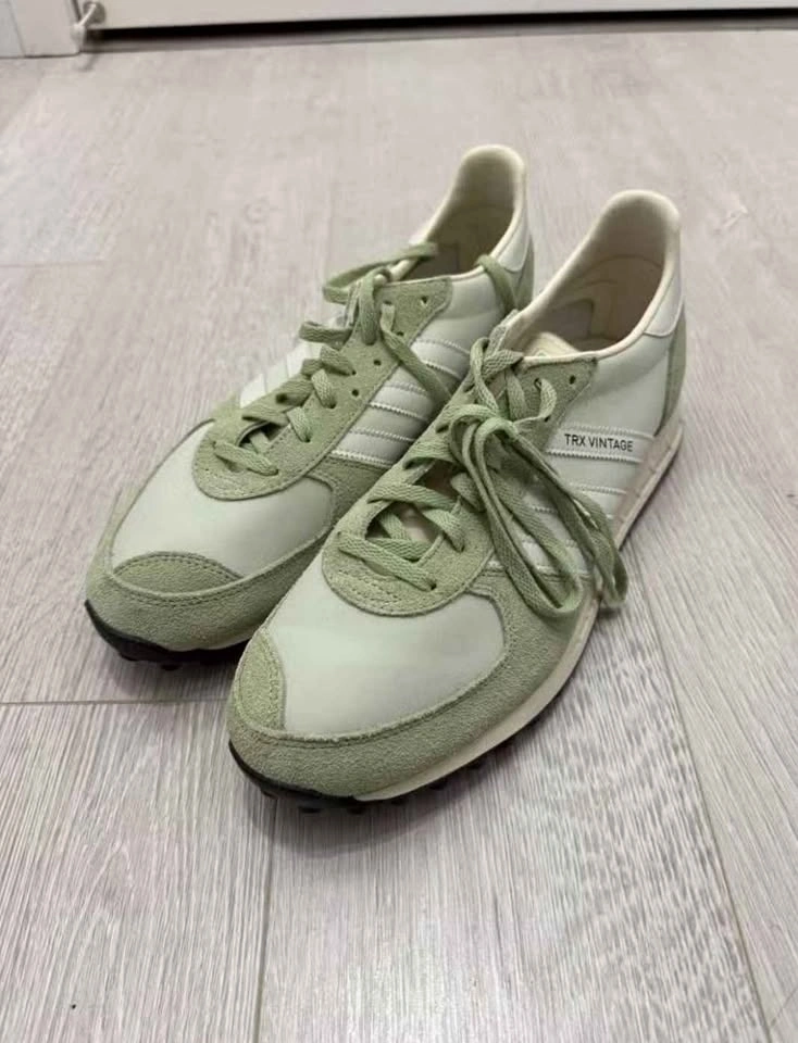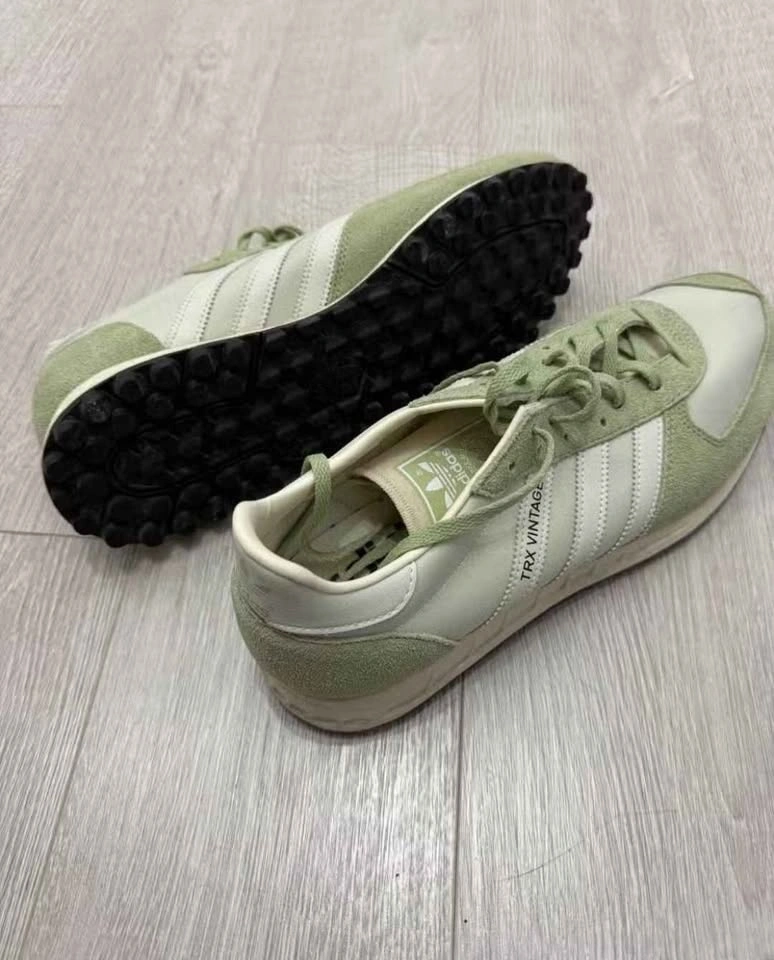 Retro Adidas TRX Vintage sneakers. Light green and white colorway. US men's size 10.5. Classic style. Great for everyday wear.