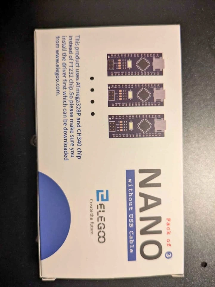 Elegoo Nano 3-pack, interchangeable with Arduino Nano (same microcontroller chip & IO). Perfect for beginner hobbyists looking to explore multi-board communication and other projects. Pickup in Liberty Village.