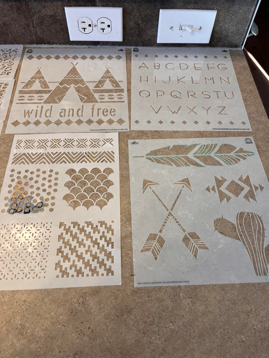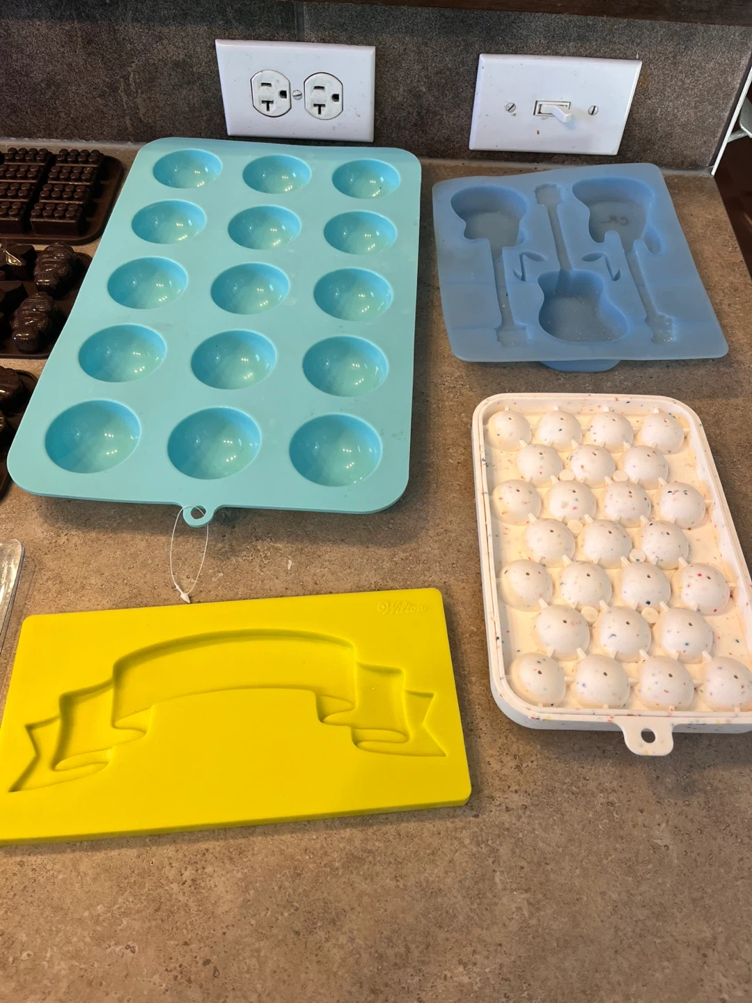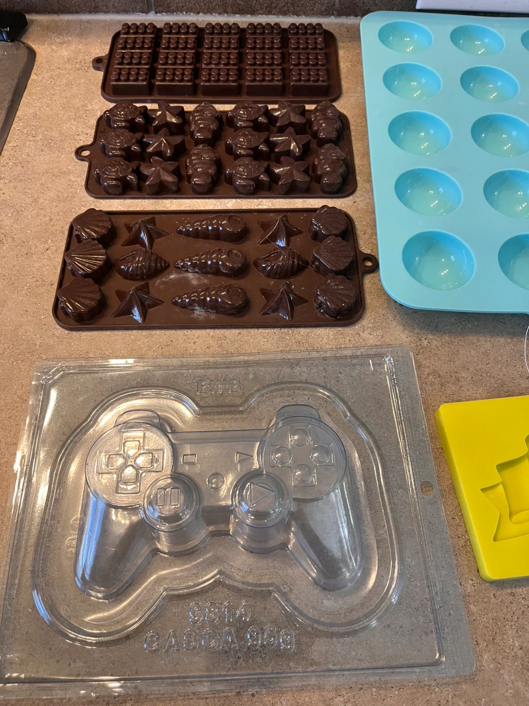 This lot includes various baking molds and stencils for cakes, chocolates, and crafts. It features stencils with animal prints, cityscapes, letters, and decorative patterns. Molds are for chocolates, candies, and cake pops. Great for creative baking projects! Located in Silverado