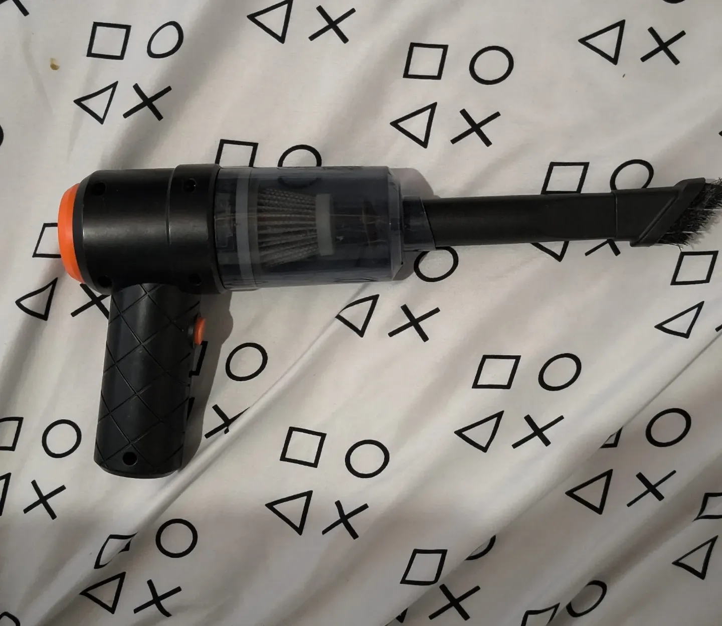Black Handheld Mini Vacuum Cleaner with Orange Accent