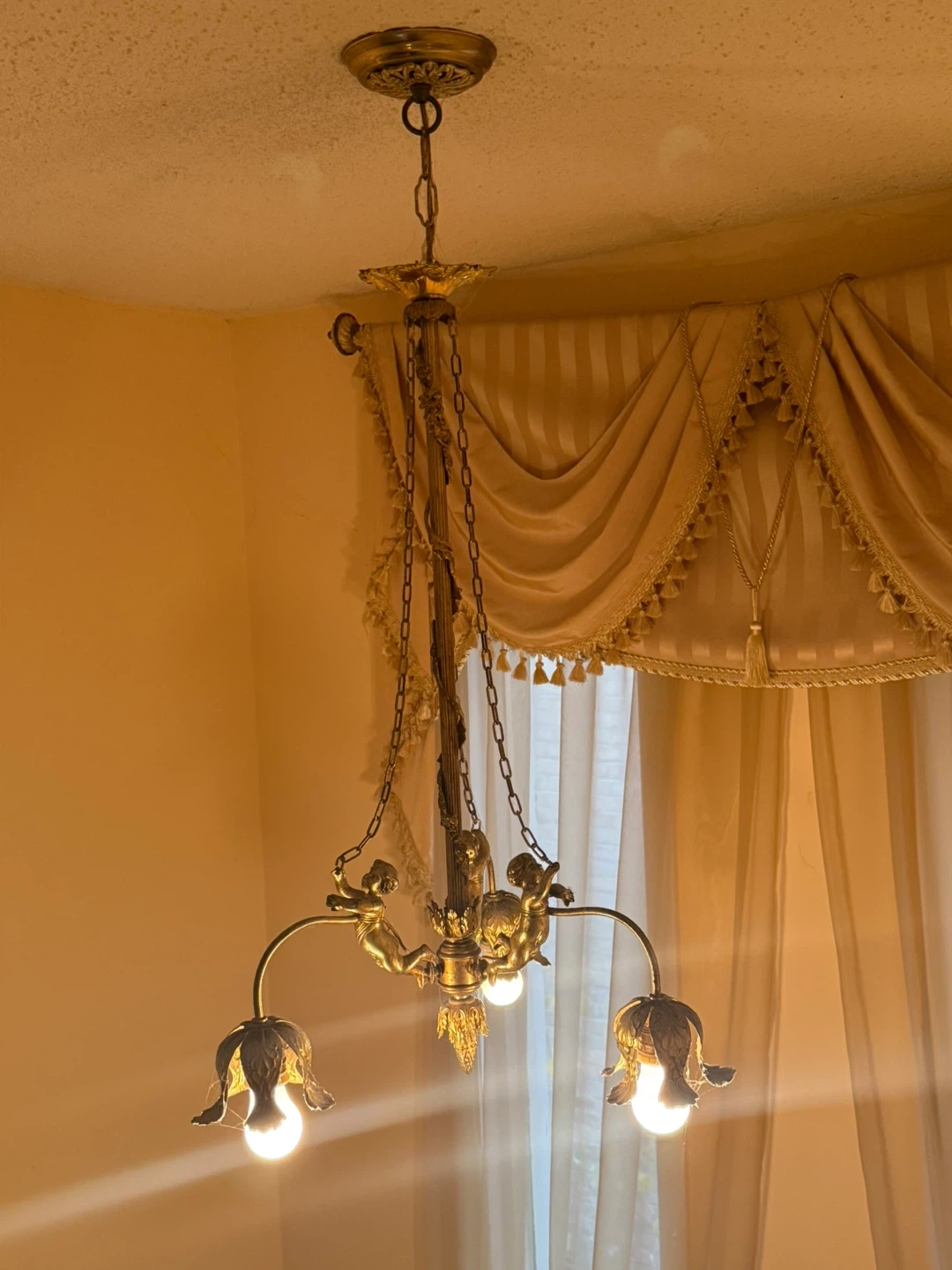 Vintage Gold Chandelier with Cherub Accents