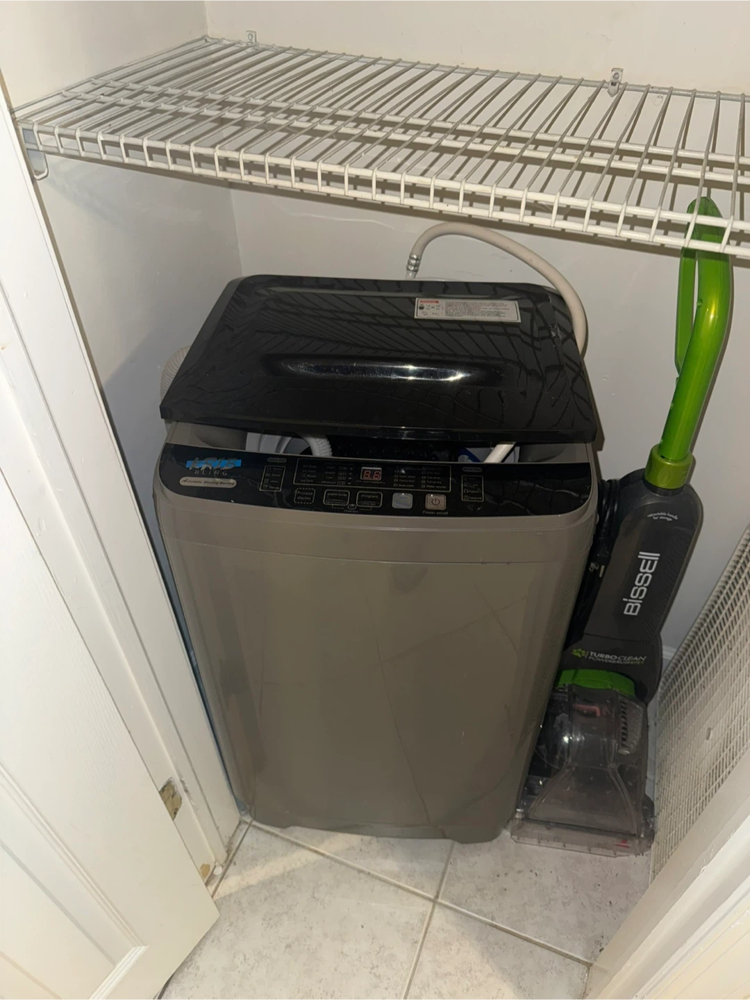 This is a KRIB BLING automatic washing machine. It's a compact top-load model with multiple wash cycles. Digital display shows program options.