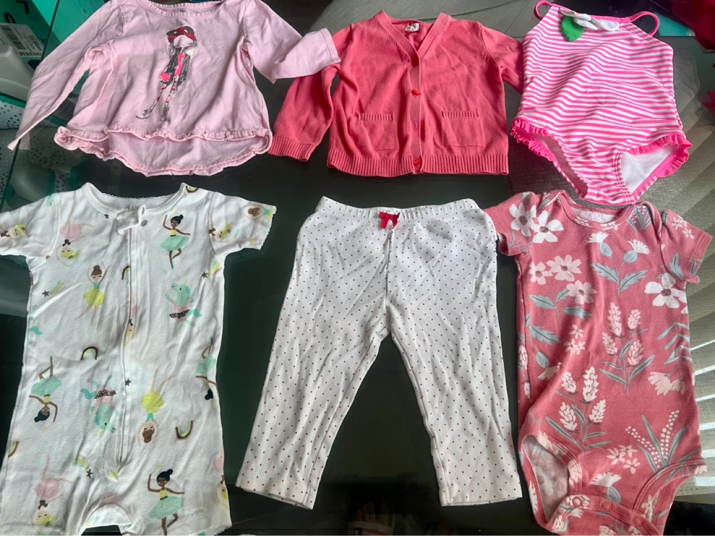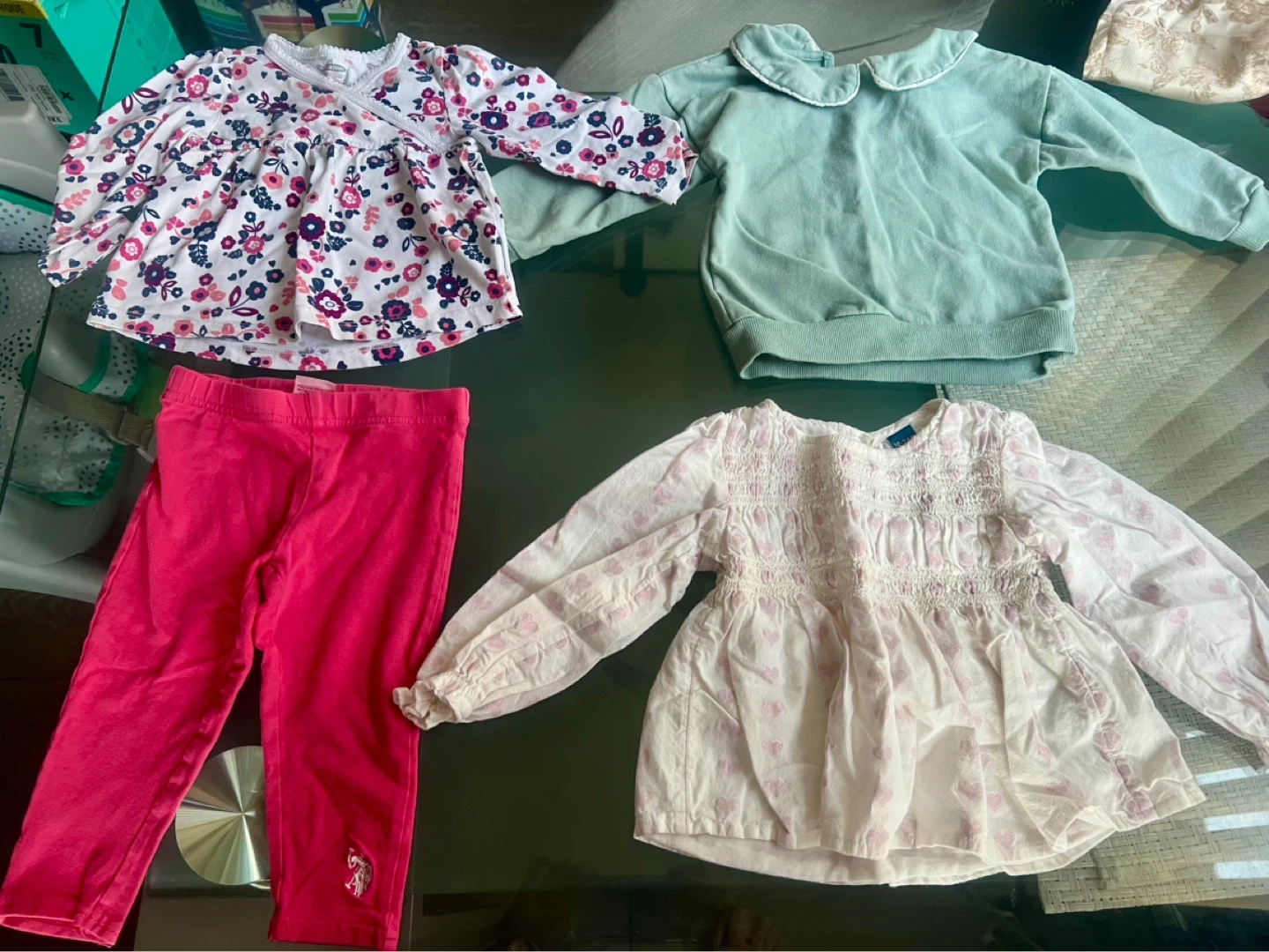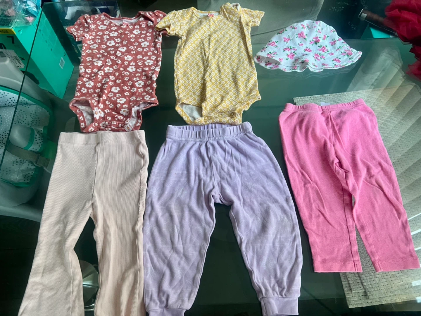 Total of 35 pieces plus summer hat, bows and beanies. Brands are Ralph Lauren, US Polo, Carter's, Disney, H&M, Baby Gap, Old Navy, Gymboree, etc.