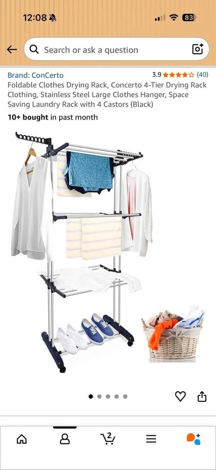 Large 4-Tier Foldable Clothes Drying Rack on Wheels