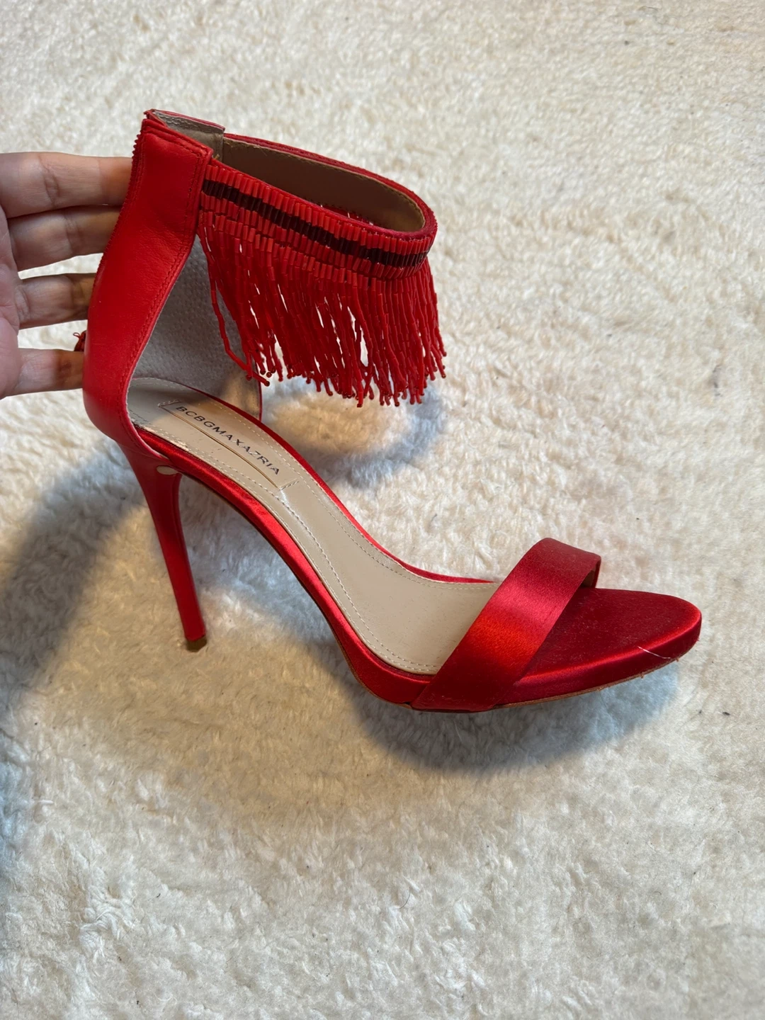BCBGMAXAZRIA Red Fringe Stiletto Heels Size 8.5M