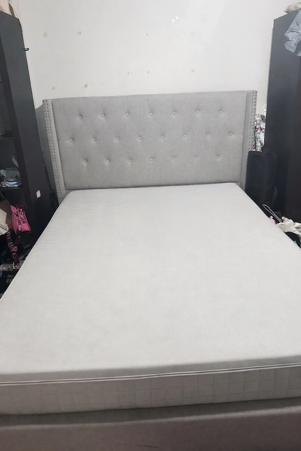 Queen size Grey Upholding Headboard Bed Frame with Storage