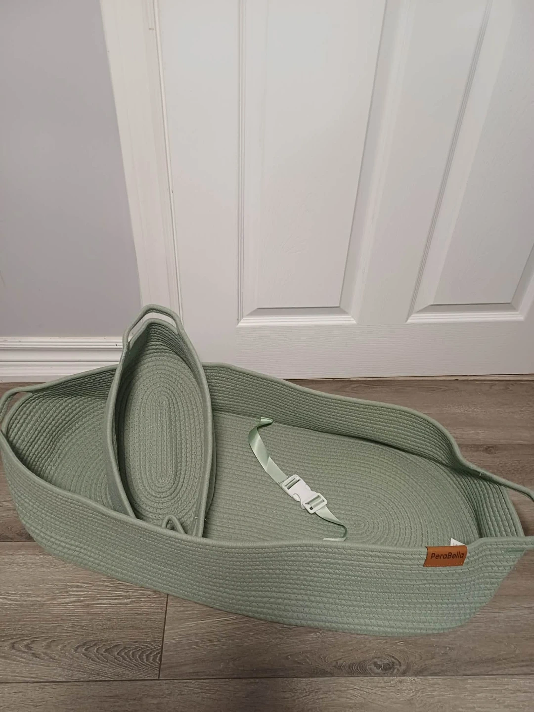 This soft, comfortable, and natural bassinet is made from 100% cotton rope. It's lightweight and easy to carry around the house, making it convenient for on-the-go use. A strap is included for securing your baby.