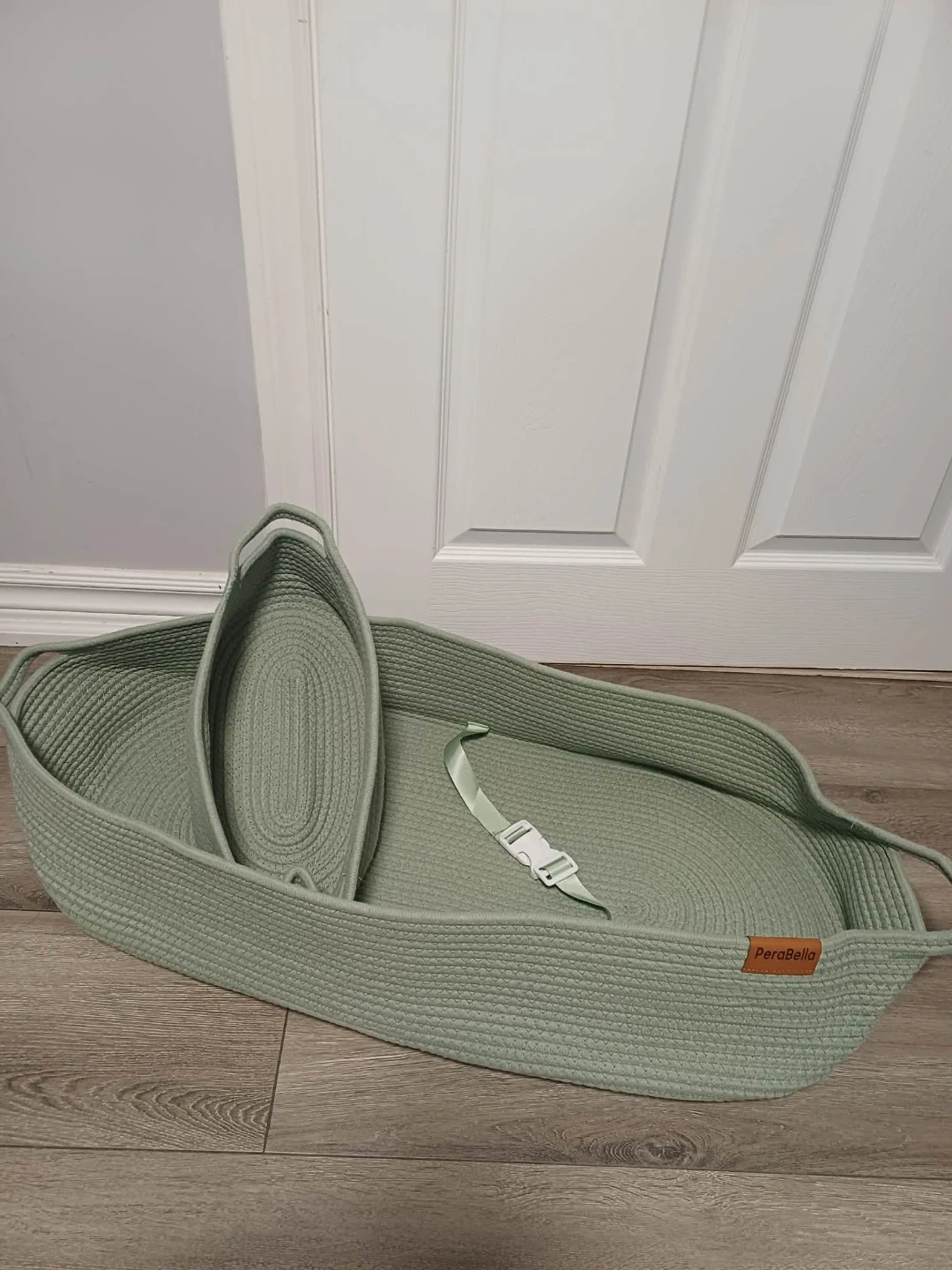 This soft, comfortable, and natural bassinet is made from 100% cotton rope. It's lightweight and easy to carry around the house, making it convenient for on-the-go use. A strap is included for securing your baby.