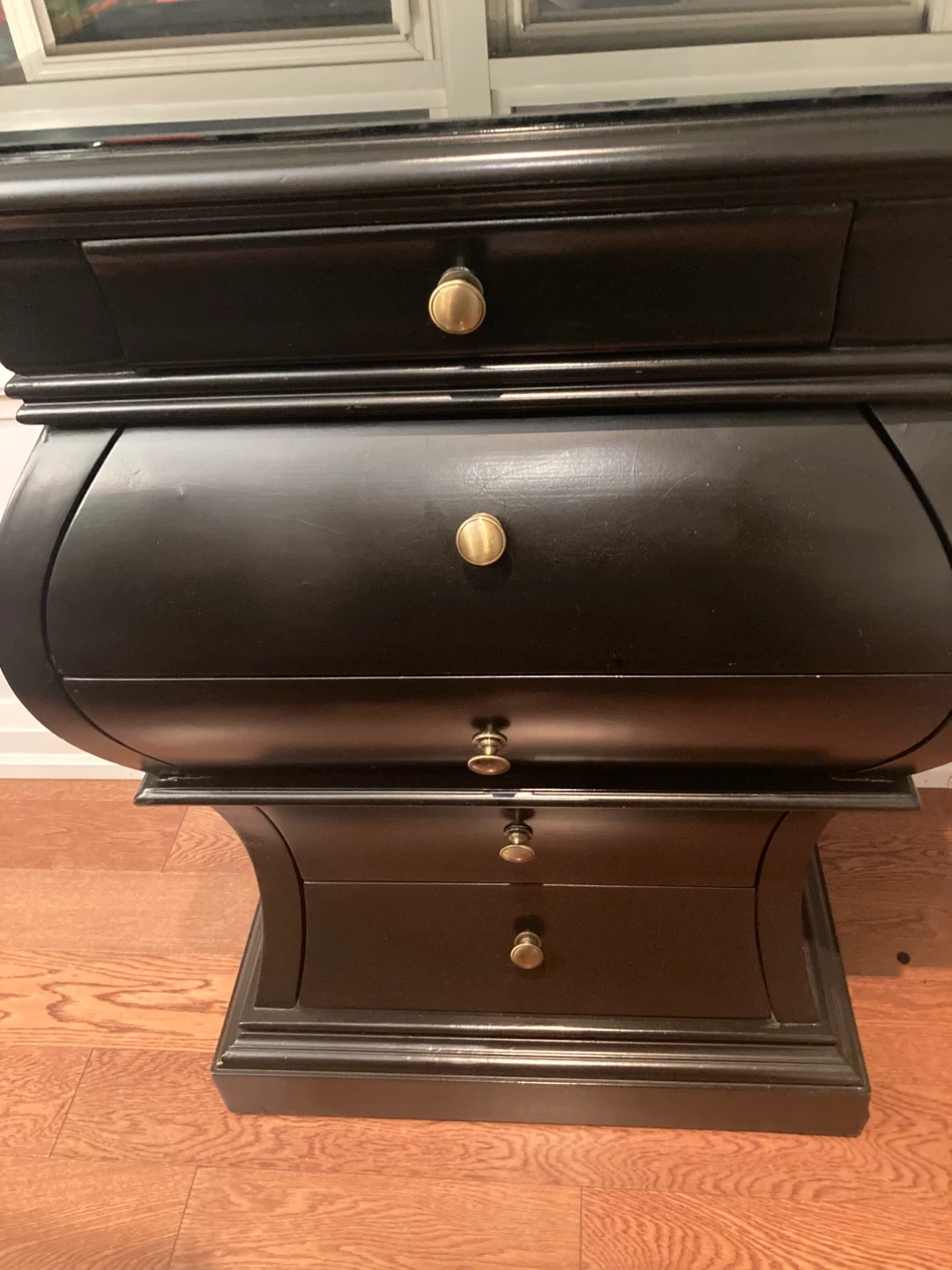 Buy & SellBlack 5-Drawer DresserBlack 5-Drawer Dresser$142This black dresser features a unique curved design and brass hardware. It has five drawers for storage. Wood construction.WHERE TO MEETCheck LocationView MapSELLERverifiedRevaBranson651 review0 chats·2 favorites·52 viewsSEND CHAT TO SELLERHi Reva! I’m interested in your listing.Hi Reva! I’m interested in your listing.Get the Karrot app to chatSign In to chat