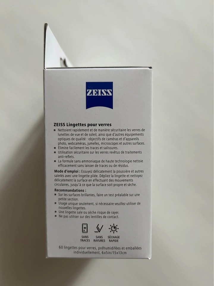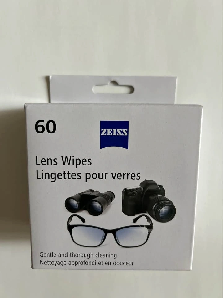 Brand New Sealed Box of 60 ZEISS Lens Cleaning Wipes that are fast drying, no scratch and streak free. The ultimate convenience in cleaning for eyeglass lenses and high quality optics. Contains 60 pre-moistened, individually wrapped lens wipes. Dimensions: 6 x 5 in / 15 x 13 cm. Public meet Warden and highway 7 area. Cash only please.