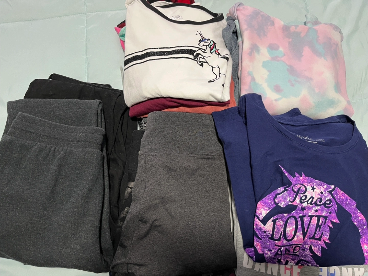 Selling a mixed lot of girls' clothing, size 14/16. Includes a variety of tops and bottoms. Perfect for everyday wear!